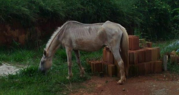 Cavalo solto foi encontrado em situação de maus tratos no Paloma