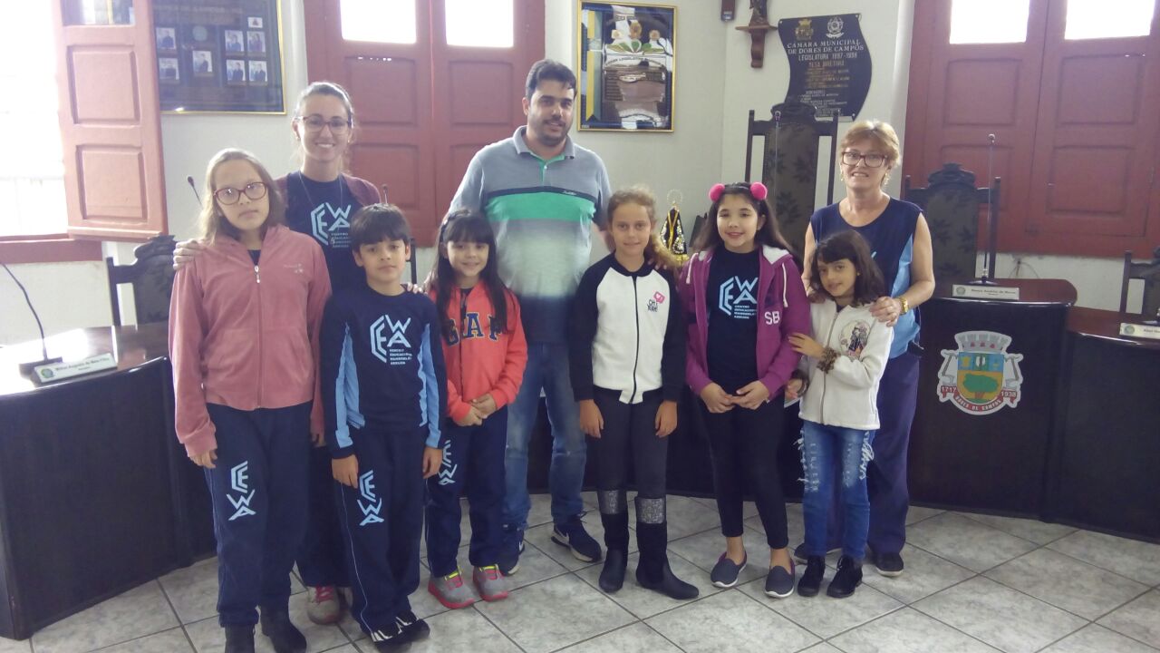 Com o objetivo de conhecer as dependências da Câmara Municipal de Dores de Campos, assim como o processo legislativo, alunos do Quarto Ano do Centro Educacional Wanderley Arruda (CEWA), acompanhados pela professora Rayane Micheline da Silva e da supervisora Jane Arruda, foram recebidos na tarde desta segunda-feira (16/04) pelo presidente da Casa, vereador Bal do Carlos Heleno (PT). “Fico muito feliz ao receber os alunos na Câmara. É uma interação muito importante e que certamente contribui para o exercício da cidadania”, destacou.