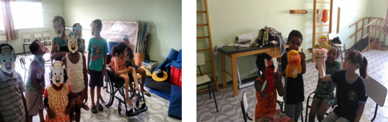 Através do teatro, por meio de atividades ocupacionais, trabalha-se a reabilitação dos nossos atendidos através da expressão e consciência corporal, expressão facial, alongamento, orientação espacial, liberdade de expressão, entre outros.