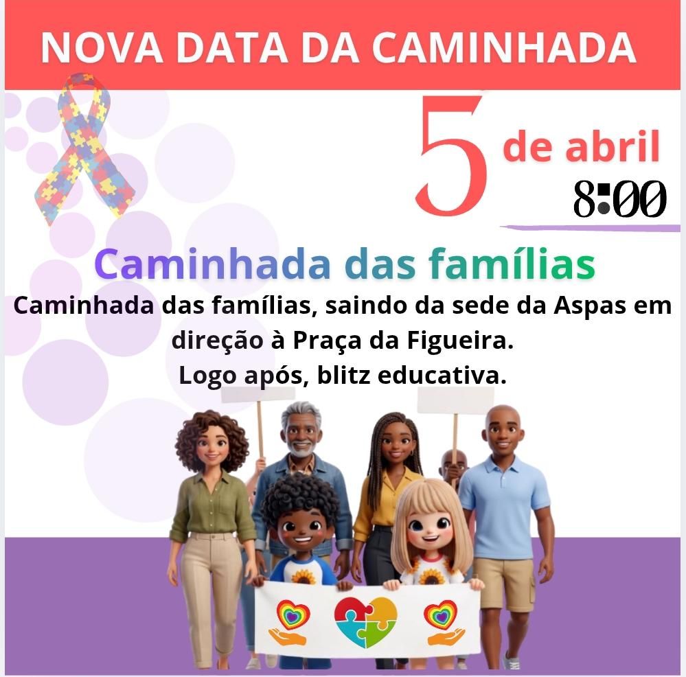 A organização da Caminhada das Famílias informou que o evento foi remarcado para este domingo, dia 5 de abril, às 8h, em Dores de Campos. A mudança ocorreu em razão do adiamento da Procissão do Enterro, transferida para sábado no mesmo horário. De acordo com os organizadores, a caminhada terá início na sede da ASPAS, na antiga Marluvas, seguindo em direção à Praça da Figueira. A programação prevê ainda a realização de uma blitz educativa logo após o percurso.