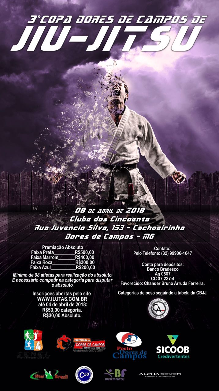 Com a expectativa de participação de aproximadamente 200 atletas de 15 cidades de Minas Gerais, vem aí a Terceira Edição da Copa Dores de Campos de Jiu Jitsu, que será realizada neste domingo (08/04) no ginásio do Clube dos Cincoenta, a partir das nove horas da manhã. As inscrições estão abertas no site www.ilutas.com.br. Outras informações pelo telefone (32) 99906 1647.