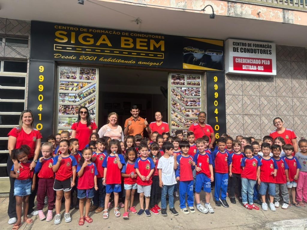 Dentro da programação da Semana Nacional do Trânsito, a Auto Escola Siga Bem recebeu a visita das crianças do Pré-Escolar Branca de Neve para uma palestra educativa sobre segurança no trânsito. Durante o encontro, os pequenos aprenderam sobre cuidados ao caminhar pelas ruas, formas corretas de atravessar, a importância da cadeirinha e outros temas essenciais para a formação de cidadãos mais conscientes e responsáveis no futuro.
