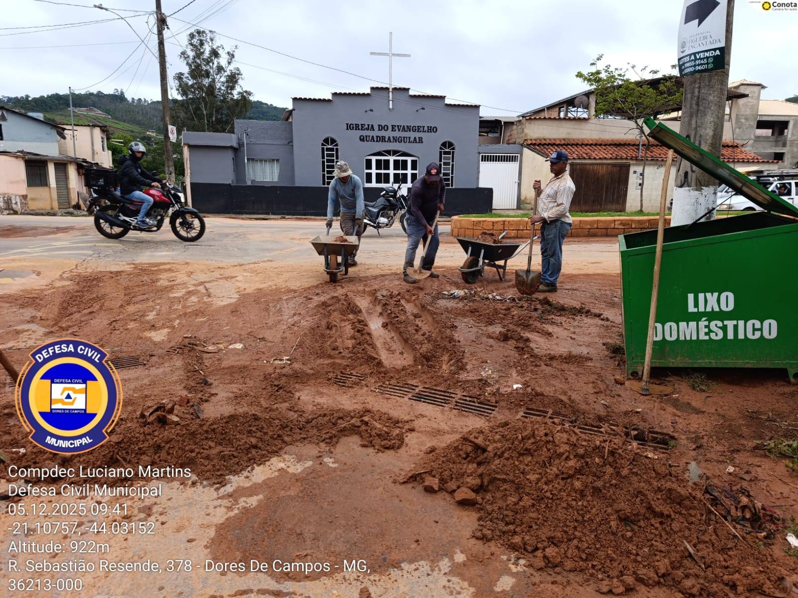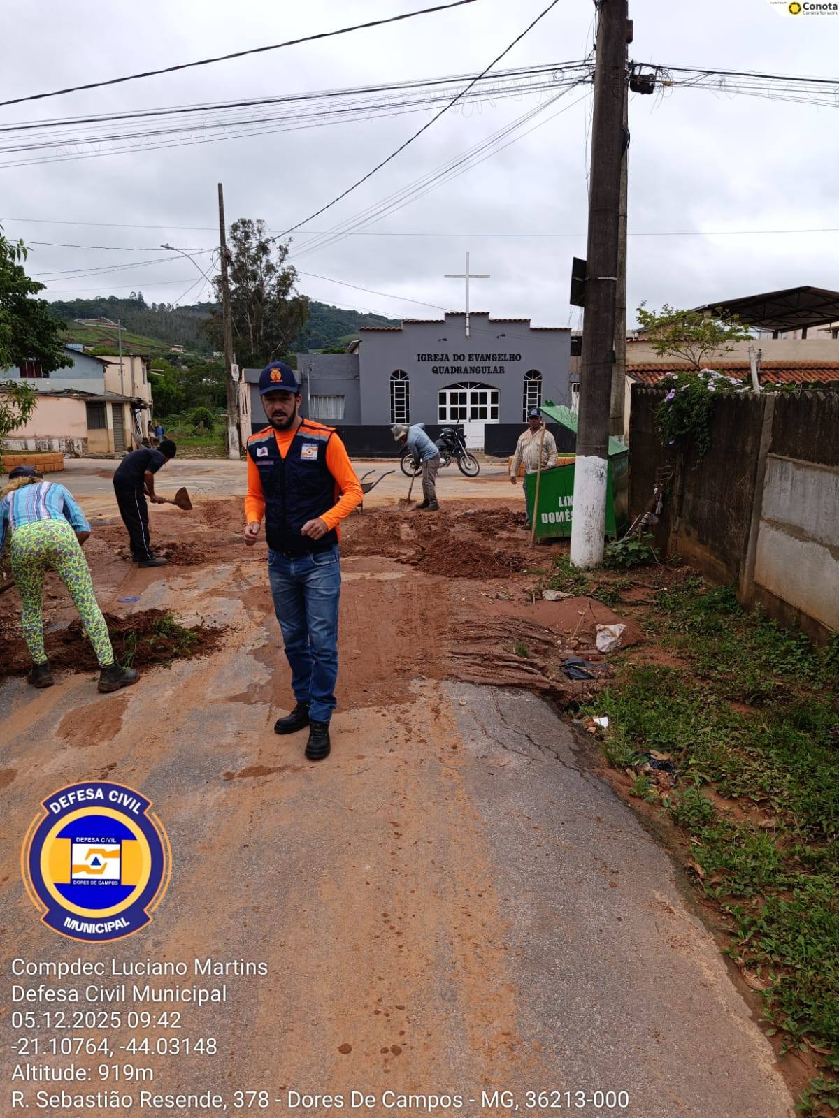 A forte chuva que atingiu Dores de Campos na noite desta quinta-feira (04/12) causou diversos transtornos na região do bairro Água Debaixo da Terra. Na manhã de hoje (05/12), a Prefeitura Municipal já está no local realizando a limpeza da rua Sebastião Resende, retirando o barro acumulado. Moradores registraram grande quantidade de lama na via, o que dificultou a passagem de veículos e pedestres. A Igreja do Evangelho Quadrangular também foi afetada, ficando parcialmente alagada devido ao volume intenso de água.