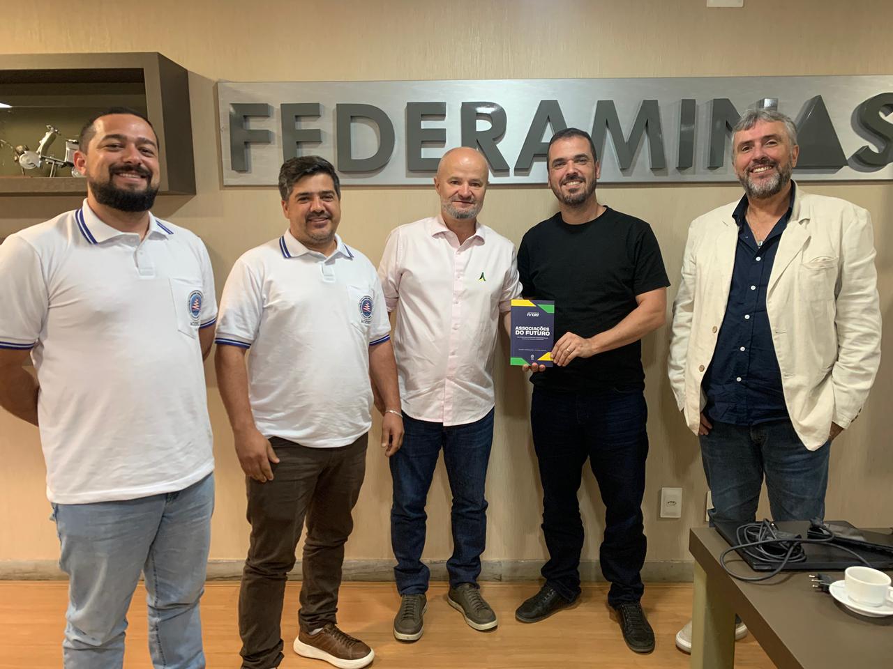 Uma comissão de Diretores da Associação Comercial e Industrial de Dores de Campos (ACIDEC) participou nesta quarta-feira (26/11), de uma reunião produtiva na sede da FEDERAMINAS, em Belo Horizonte. O encontro discutiu novas possibilidades de parceria e apresentou ferramentas voltadas ao fortalecimento institucional da Associação. Estiveram presentes o presidente da ACIDEC, Marco Aurélio Resende, e os diretores Márcio José, Patrick Marçal e Robert dos Santos. Pela Federação, participou o presidente Valmir Rodrigues, acompanhado de uma assessora e de uma colaboradora do setor de produtos.