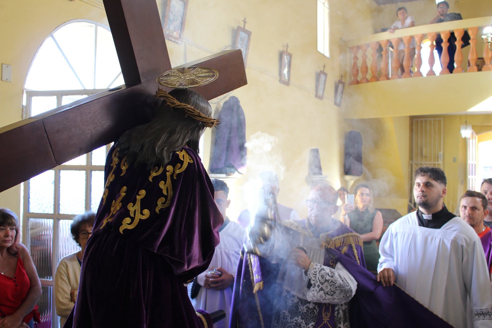 A tradicional Rasoura de Nosso Senhor dos Passos marcou a programação na manhã desta segunda-feira (30/03) em Dores de Campos, reunindo fiéis em um momento de profunda fé e devoção. A cerimônia foi seguida por procissão em torno da Igreja do Rosário, mantendo viva uma das mais antigas manifestações religiosas do município. Durante o trajeto, os participantes acompanharam com respeito e oração cada etapa do rito. O ato reforça a importância da Semana Santa para a comunidade católica local, preservando tradições centenárias que atravessam gerações e fortalecem a religiosidade do povo dorense.