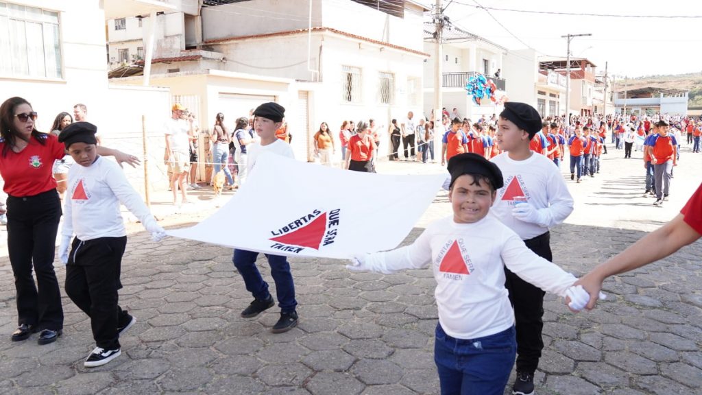 A rua foi tomada pelas cores verde e amarela, em uma demonstração de respeito à pátria e valorização da história brasileira. A programação contou com a participação de escolas do município, que se apresentaram com fanfarras, músicas e atividades culturais, envolvendo crianças e jovens em um momento de aprendizado e celebração da cidadania.