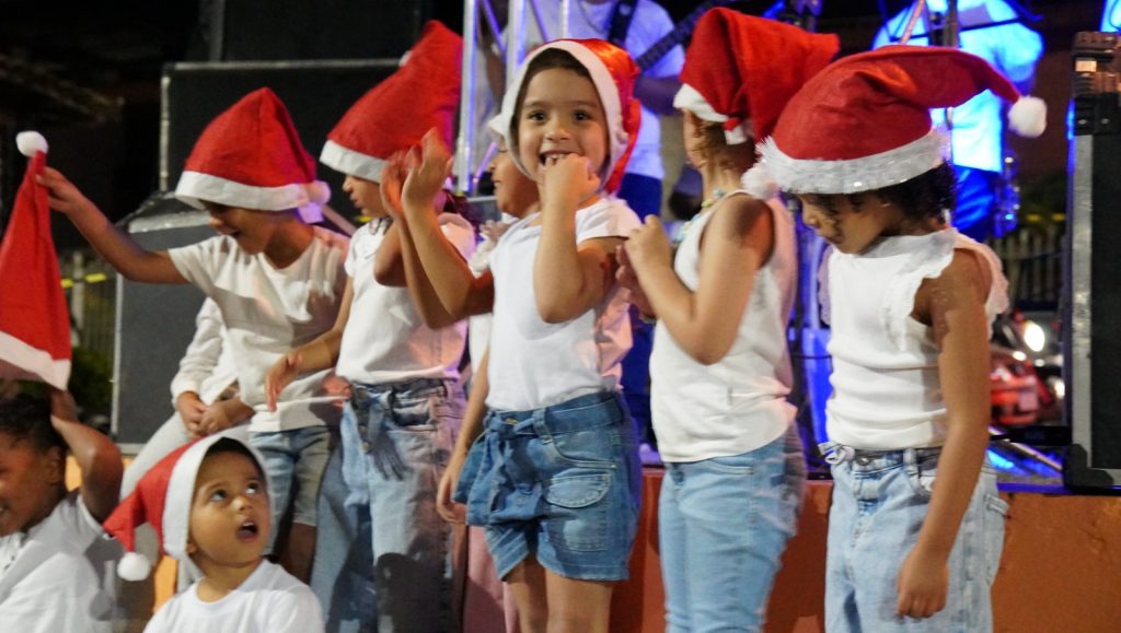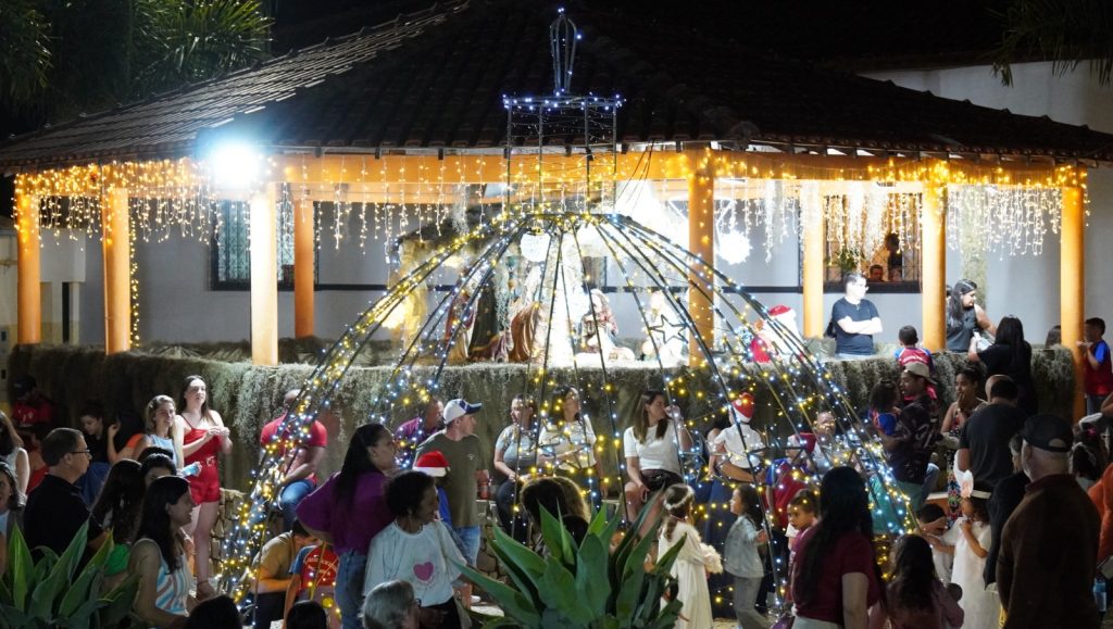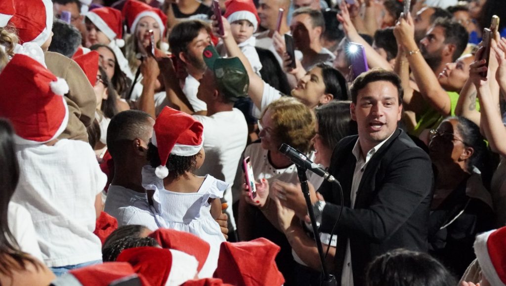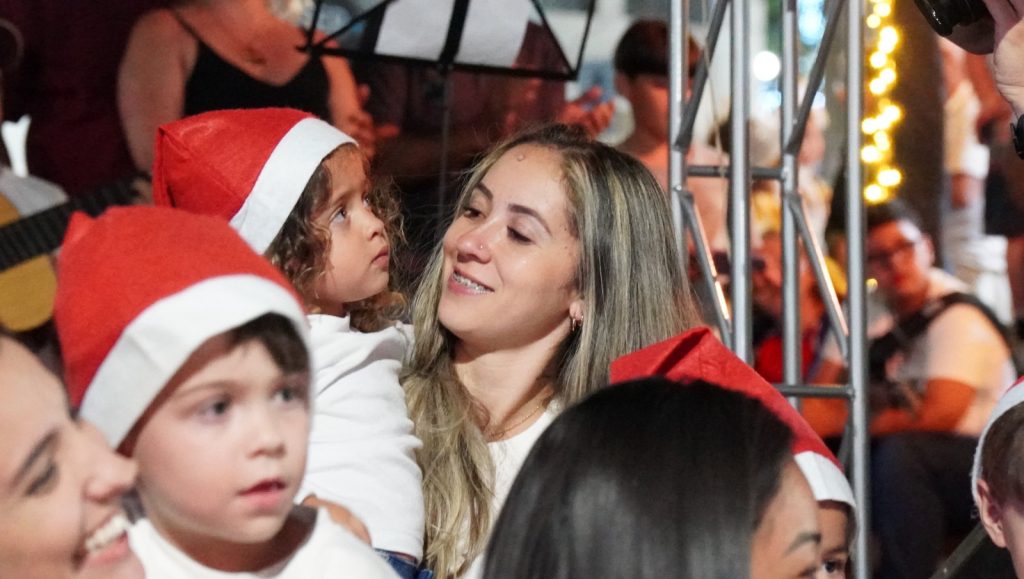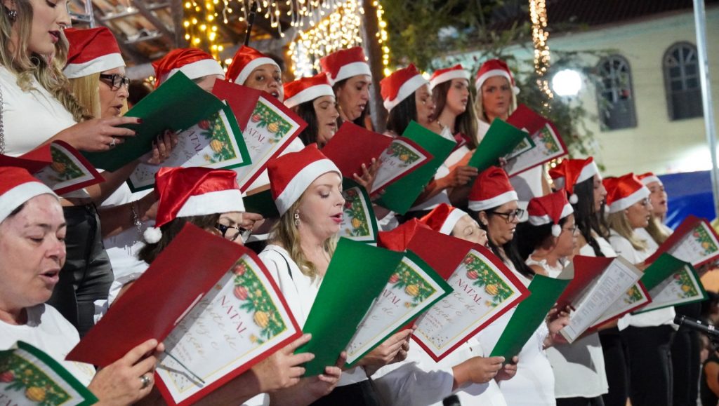 A noite desta sexta-feira (05/12) foi marcada por encanto e emoção em Dores de Campos, com a inauguração das luzes de Natal. A Praça da Figueira ganhou um cenário especial, repleto de cores, brilho e clima festivo, recebendo grande público para acompanhar as apresentações do projeto “Natal – Noite de Luz e Canção”, protagonizado pelos alunos da Rede Municipal de Ensino. As famílias se emocionaram com cada apresentação, enquanto as crianças se encantaram com a magia que tomou conta do centro da cidade.