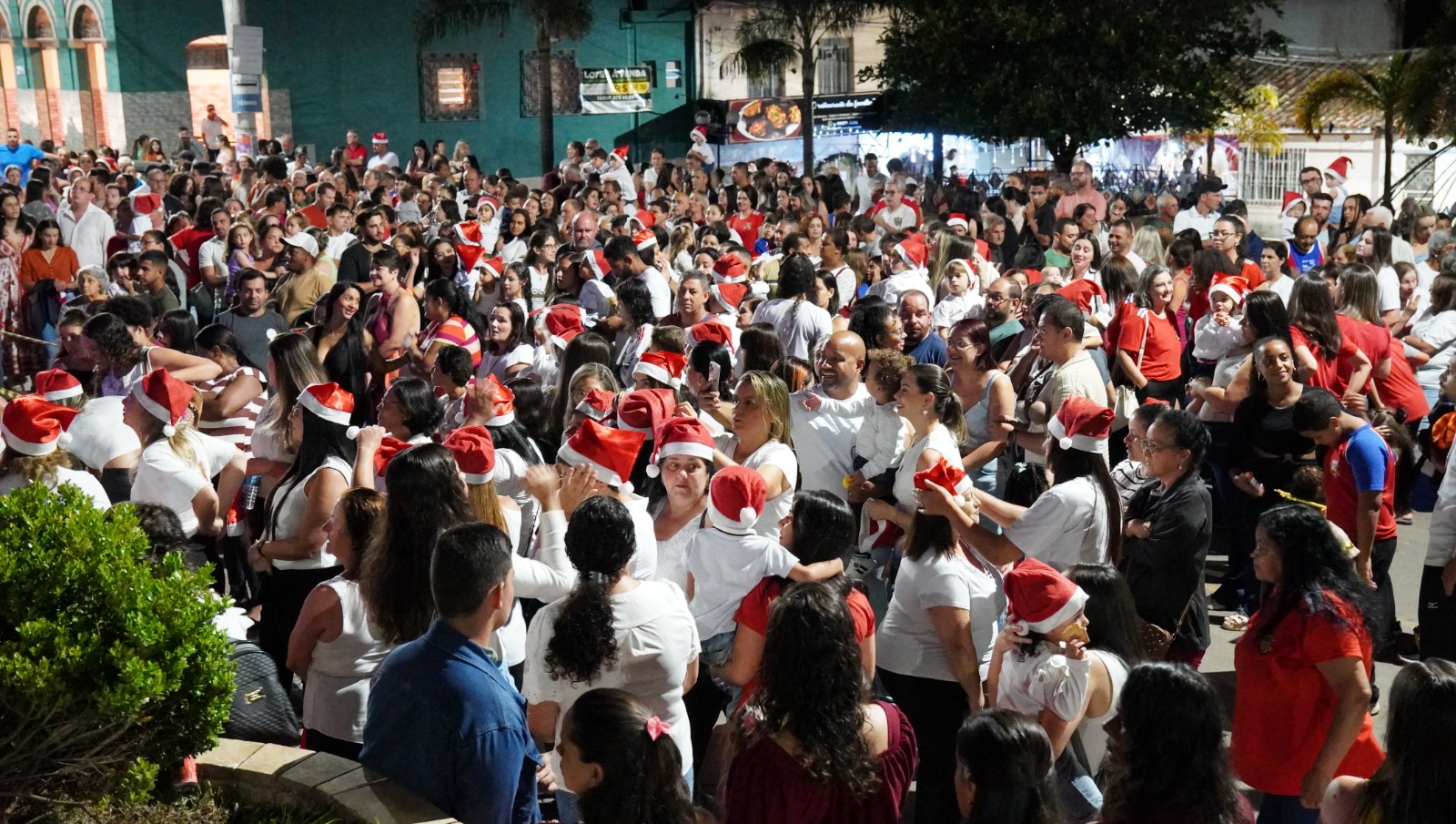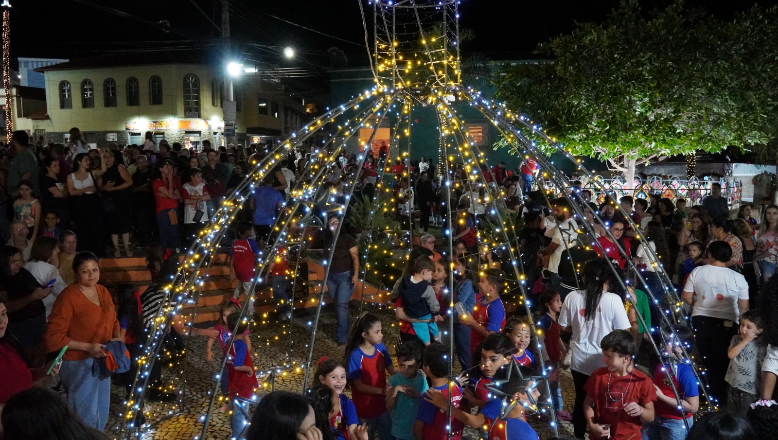 A noite desta sexta-feira (05/12) foi marcada por encanto e emoção em Dores de Campos, com a inauguração das luzes de Natal. A Praça da Figueira ganhou um cenário especial, repleto de cores, brilho e clima festivo, recebendo grande público para acompanhar as apresentações do projeto “Natal – Noite de Luz e Canção”, protagonizado pelos alunos da Rede Municipal de Ensino. As famílias se emocionaram com cada apresentação, enquanto as crianças se encantaram com a magia que tomou conta do centro da cidade.