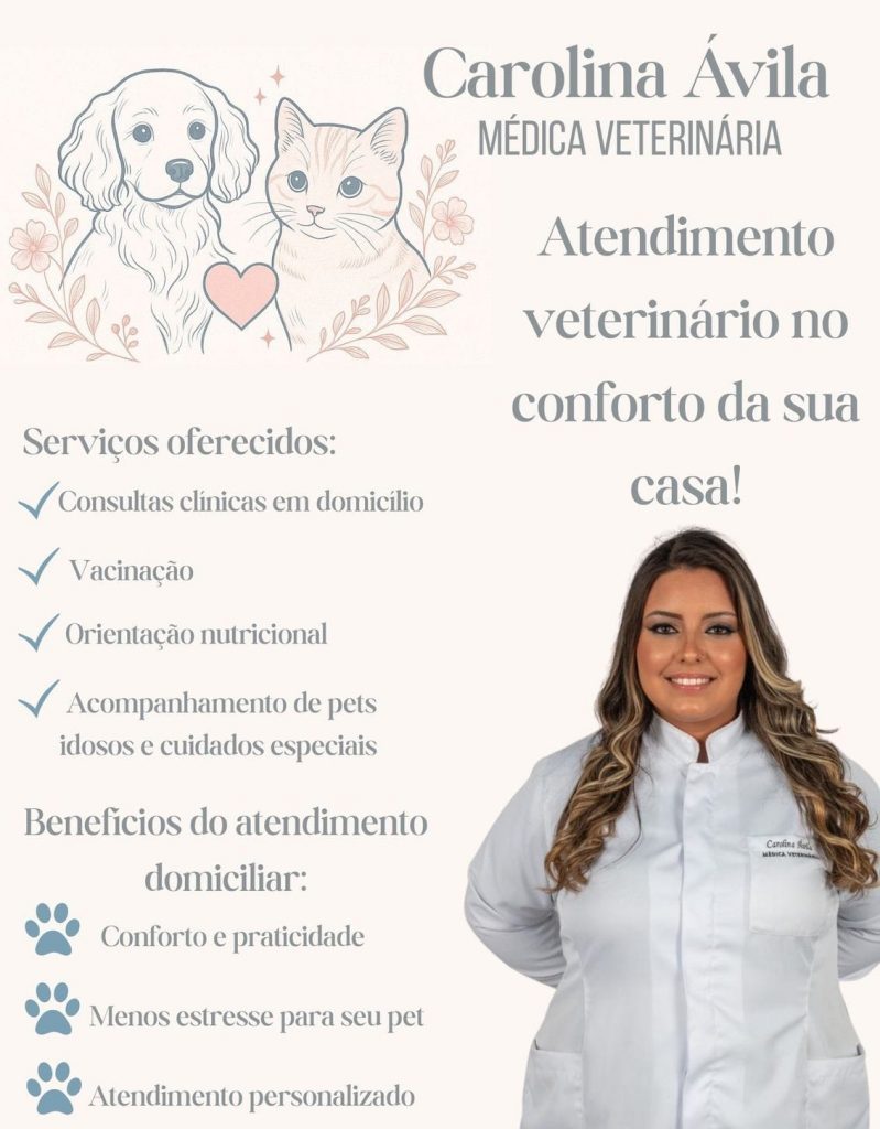 A Médica Veterinária Carolina Ávila oferece todo cuidado, carinho e dedicação que o seu pet merece.