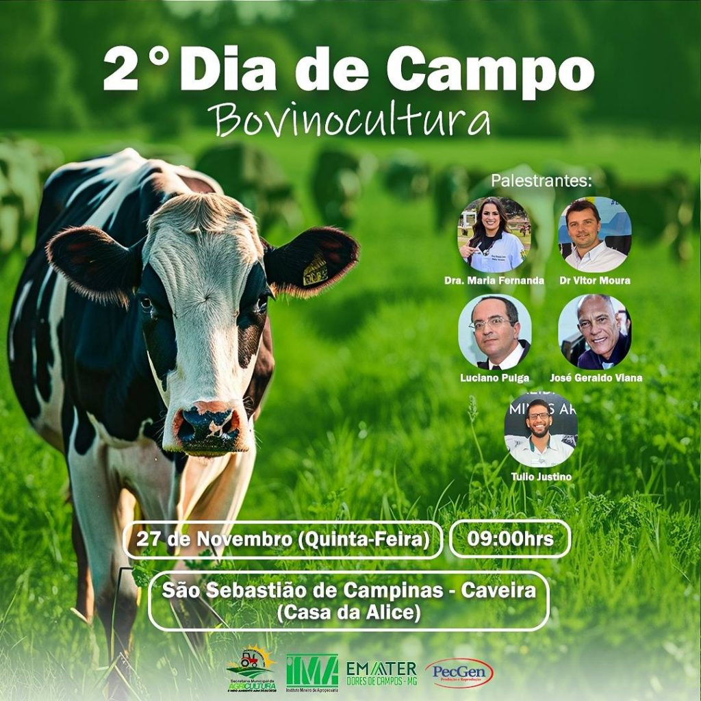 Dores de Campos sedia, nesta quinta-feira (27/11), o 2º Dia de Campo: Bovinocultura, um evento dedicado à capacitação e ao fortalecimento da atividade leiteira no município. A programação, marcada para as 9h, acontecerá na comunidade de São Sebastião de Campinas, Caveira na Casa da Alice. O encontro reúne especialistas de diferentes instituições para abordar temas essenciais ao desenvolvimento da pecuária leiteira.