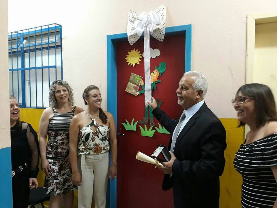 Na noite da última sexta-feira (23/02) foi inaugurada a Sala de Leitura e Vídeo do Pré-escolar Municipal Branca de Neve, em homenagem ao professor Antônio do Livramento da Costa, carinhosamente conhecido como Toni do Praxedes. A secretária municipal de educação, Sirlene Aliane, também homenageou a “dona” Namir Lopes Andrade Silva, autora do hino da escola. “Fico muito feliz em poder homenagear em vida, estas duas pessoas tão importantes”, destacou.