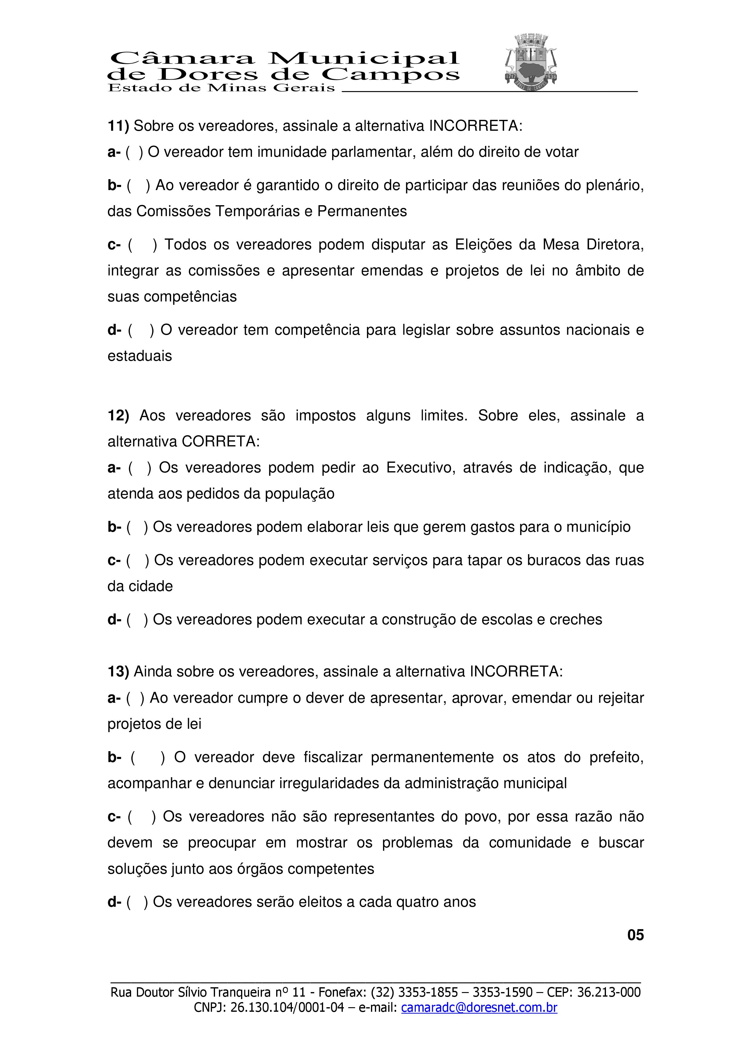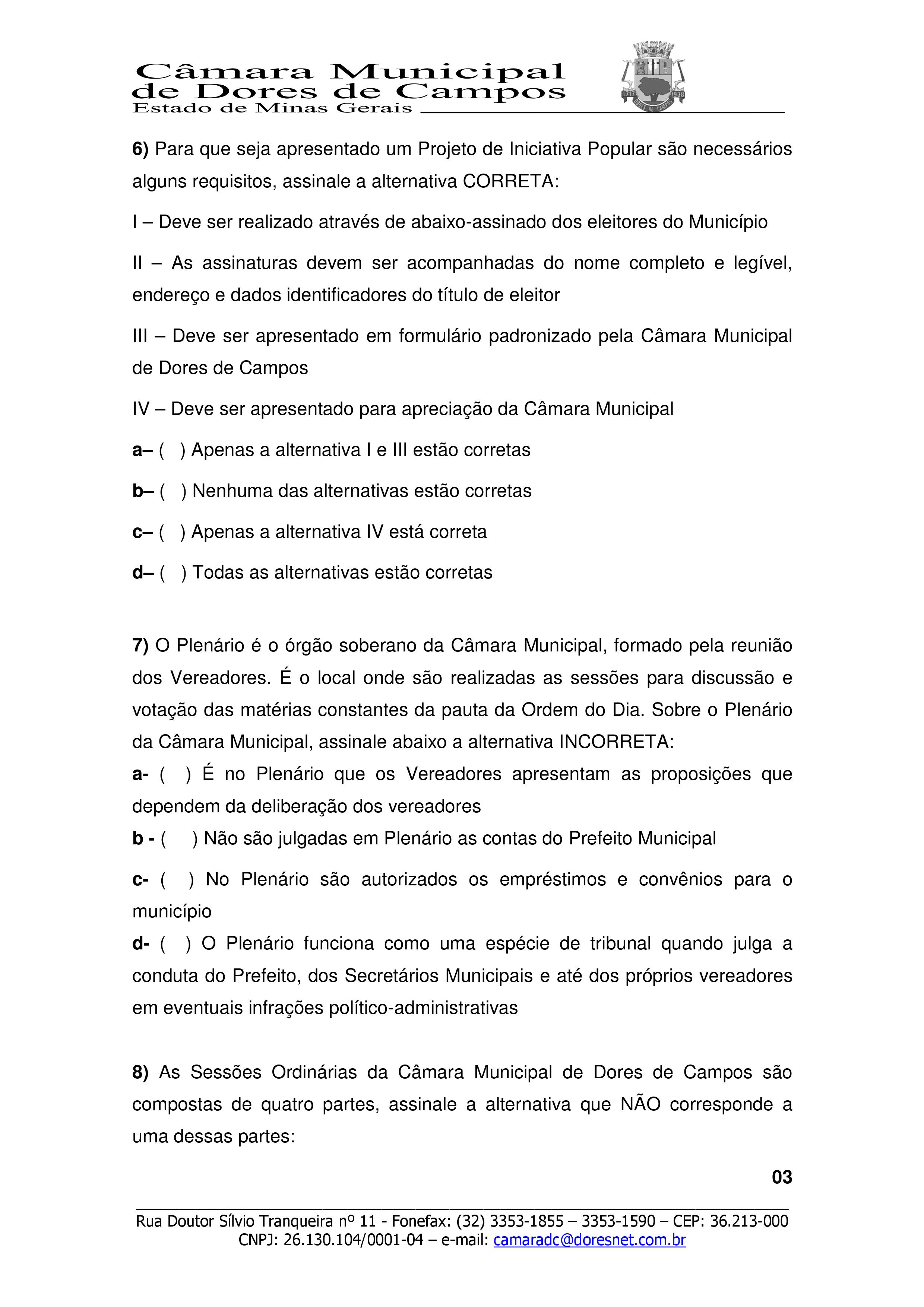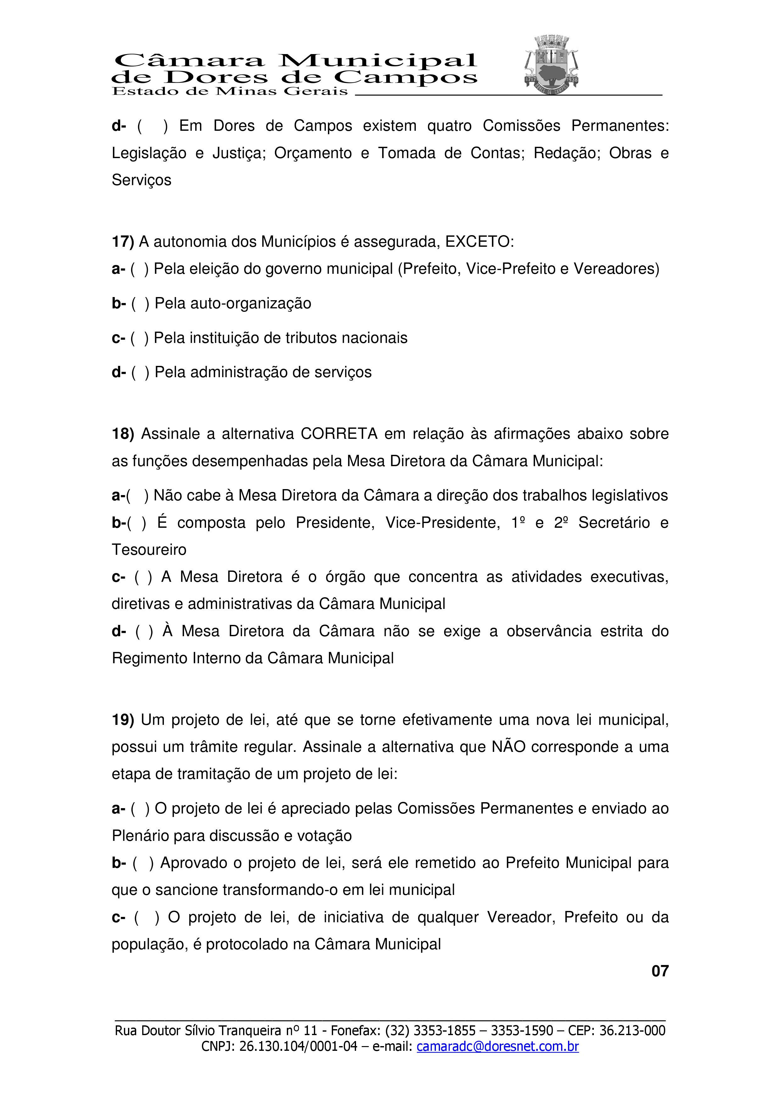 Com absoluta exclusividade, estamos publicando o Gabarito Oficial da prova do Jovem Legislador 2019 da Câmara Municipal de Dores de Campos. A prova foi aplicada no último sábado (26) na Escola Municipal Randolfo Teixeira e contou com a participação dos alunos da Escola Estadual Duque de Caxias e do Centro Educacional Wanderley Arruda (CEWA).