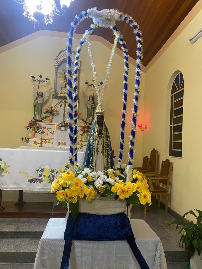 O andor com a imagem de Nossa Senhora Aparecida, na Igreja de São Sebastião, já está lindamente decorado para a celebração deste domingo (12/10). A comunidade de São Sebastião de Campinas, conhecida como Caveira, na zona rural de Dores de Campos, se prepara para realizar a 2ª Procissão de Nossa Senhora Aparecida, com uma programação repleta de fé, devoção e confraternização. As atividades terão início às 9h, com uma Rua de Lazer para as crianças, incluindo distribuição de doces e balas, além da participação especial da ONG Maria Gaivota.