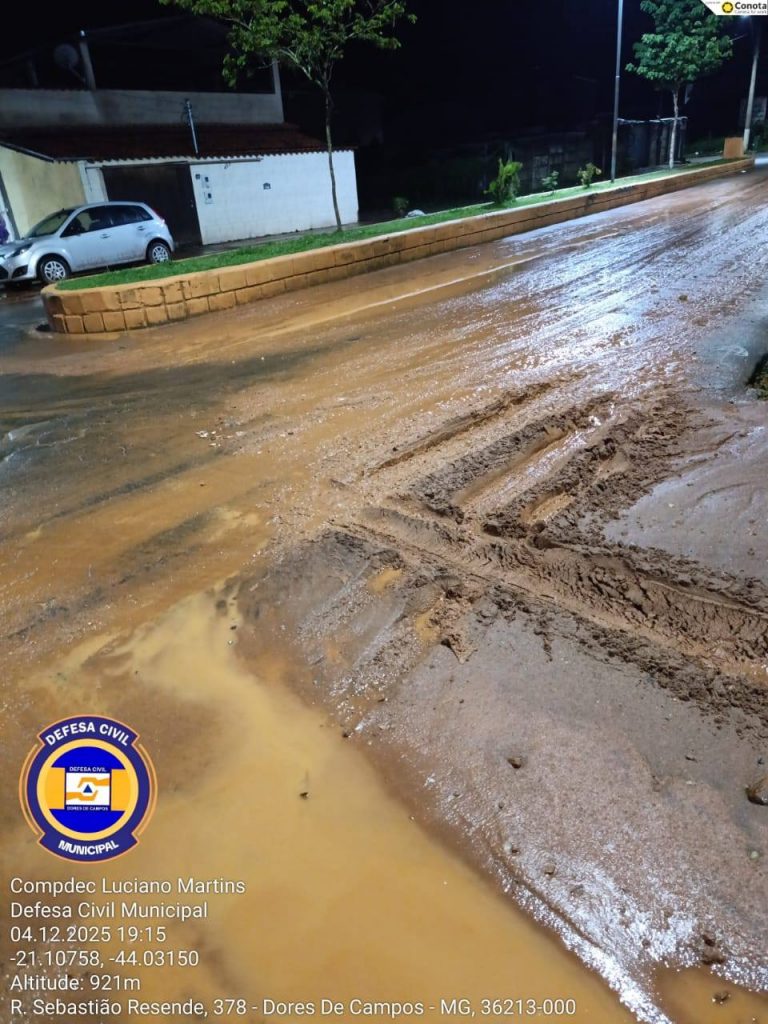 A forte chuva que atingiu Dores de Campos na noite desta quinta-feira (04/12) causou diversos transtornos na região do bairro Água Debaixo da Terra. Moradores registraram grande quantidade de barro na rua Sebastião Resende, dificultando a passagem de veículos e pedestres. A situação também atingiu a Igreja do Evangelho Quadrangular, que ficou parcialmente alagada devido ao grande volume de água.