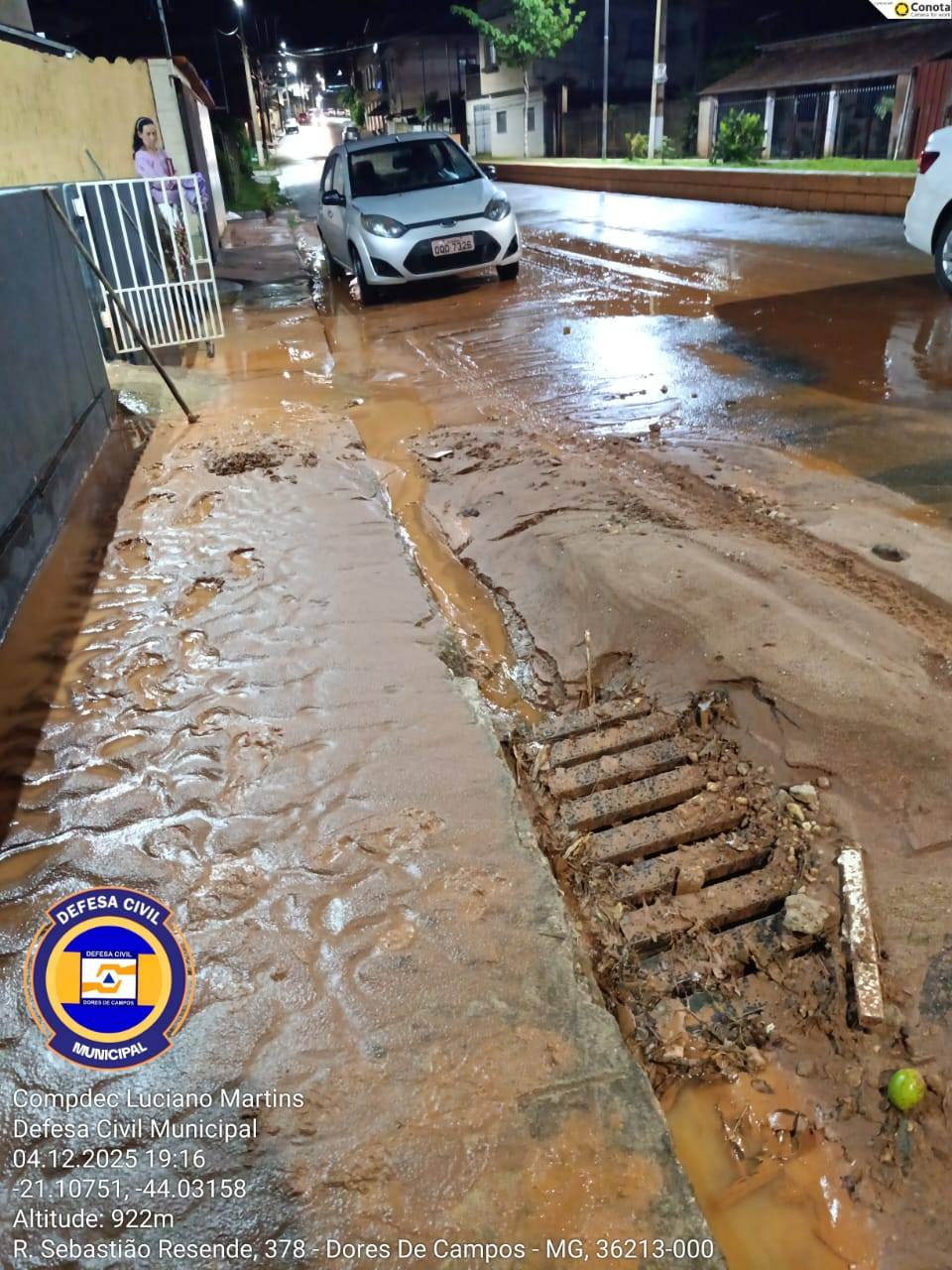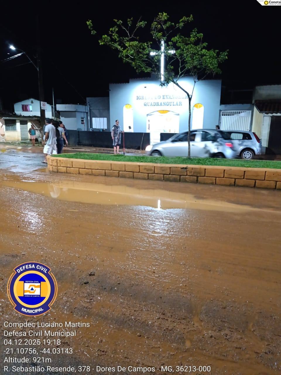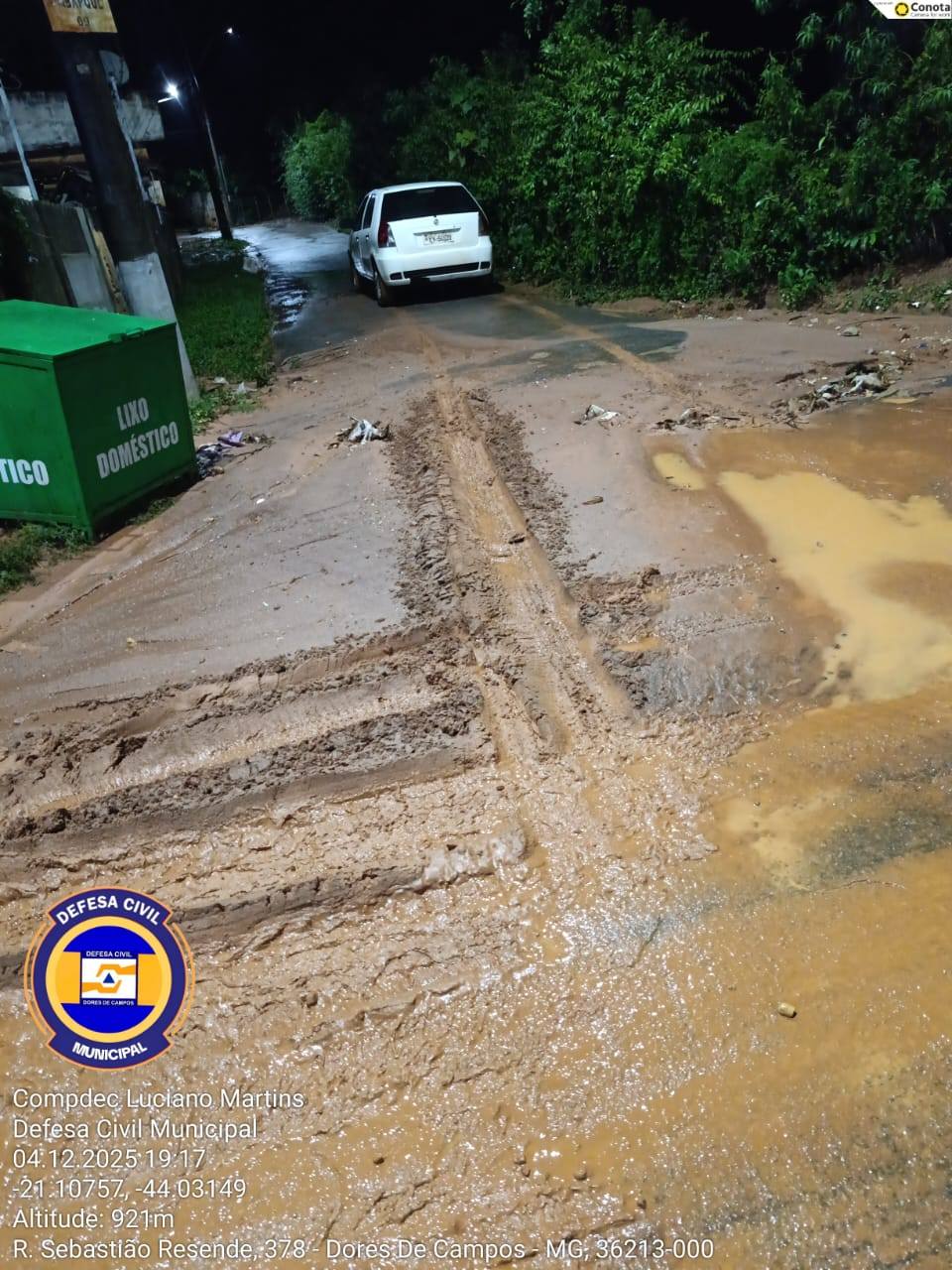 A forte chuva que atingiu Dores de Campos na noite desta quinta-feira (04/12) causou diversos transtornos na região do bairro Água Debaixo da Terra. Moradores registraram grande quantidade de barro na rua Sebastião Resende, dificultando a passagem de veículos e pedestres. A situação também atingiu a Igreja do Evangelho Quadrangular, que ficou parcialmente alagada devido ao grande volume de água.