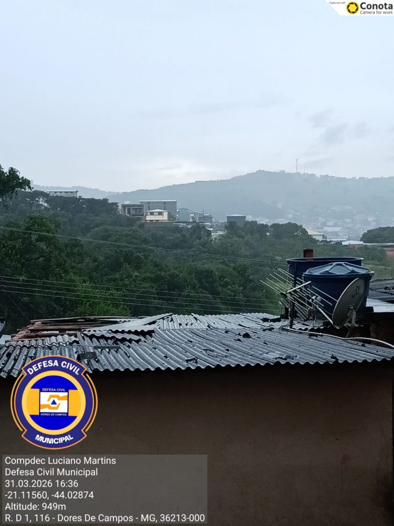 Uma forte chuva acompanhada de granizo atingiu o município de Dores de Campos na tarde desta terça-feira (31/03), surpreendendo moradores e provocando momentos de apreensão em diversos pontos da cidade. De acordo com informações atualizadas, o temporal causou danos no bairro dos Freitas, onde três residências tiveram seus telhados arrancados pela força do vento e da chuva. Apesar dos estragos, a Defesa Civil informou que não houve registro de vítimas. O órgão segue em estado de prontidão, monitorando a situação e prestando apoio às famílias afetadas. Em caso de emergência, a população pode acionar o plantão 24 horas pelo telefone (32) 99850-4066. A recomendação é que os moradores permaneçam atentos, especialmente em áreas de risco, e acionem a Defesa Civil sempre que necessário.