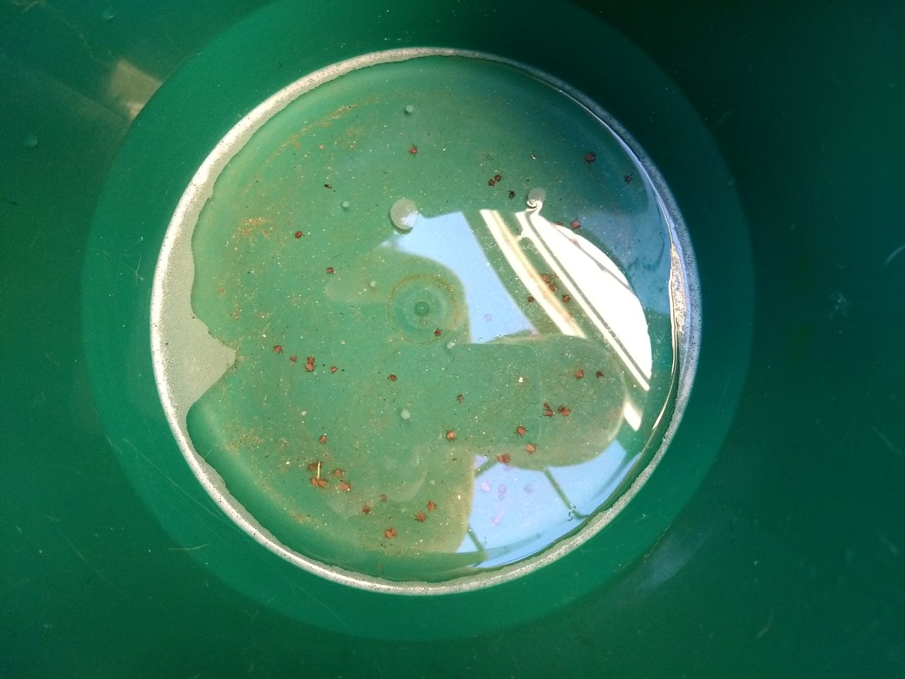 No balde com água, estariam os carrapatos recolhidos por ele