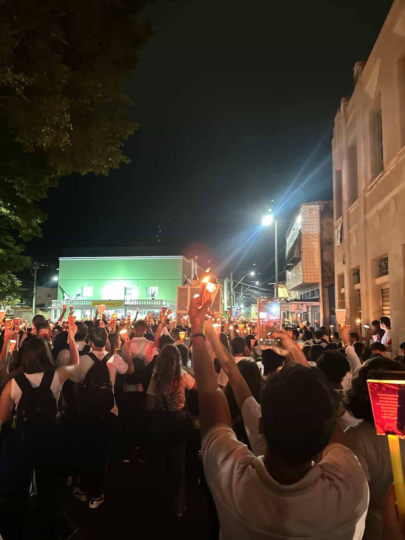 A Via Lucis, que recorda os acontecimentos após a ressurreição de Jesus Cristo, contou com expressiva participação popular. Durante o percurso, os fiéis seguiram em clima de devoção, muitos vestidos de branco e portando velas, simbolizando a luz e a renovação da fé.