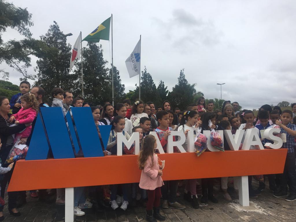 Depois do passeio pela Marluvas, as crianças também ganharam um Kit Guloseimas com bombons, pipoca, biscoitos, doces e chocolates, além de cartão comemorativo. Por fim, no pátio da Marluvas, as crianças deram o grito de guerra “Quem nós somos? Marluvas! Quem nós somos? Marluvas! E o que nós temos? A força da história!” Desta forma, além de gerar emprego e renda para o nosso povo, a Marluvas reafirma o seu co promisso com o bem estar familiar dos seus funcionários.