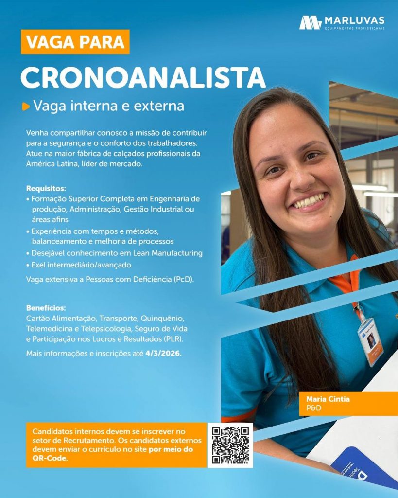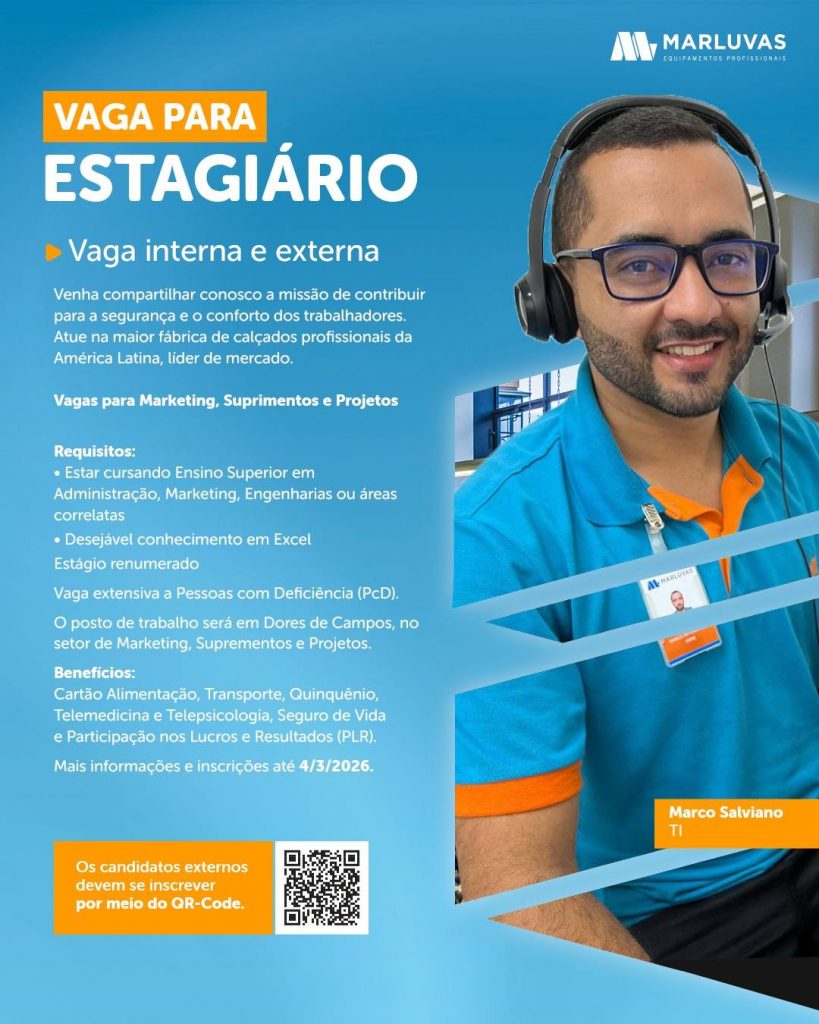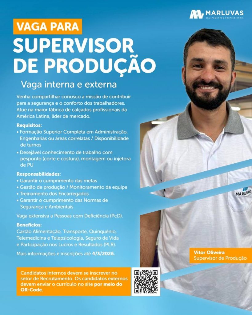 A Marluvas está com oportunidades abertas para atuação em sua unidade no município de Dores de Campos. Reconhecida nacionalmente pela fabricação de calçados de segurança, a empresa é uma das principais empregadoras da cidade e referência no setor. As vagas contemplam diferentes áreas da produção e setores administrativos, oferecendo oportunidades para candidatos com variados níveis de escolaridade e experiência profissional.