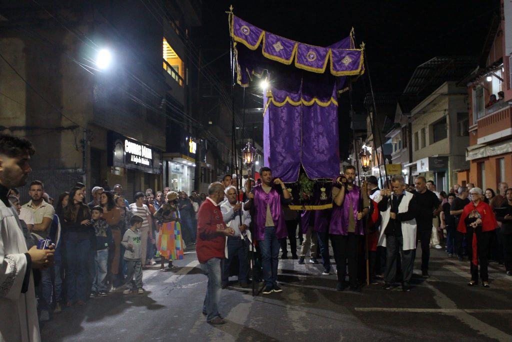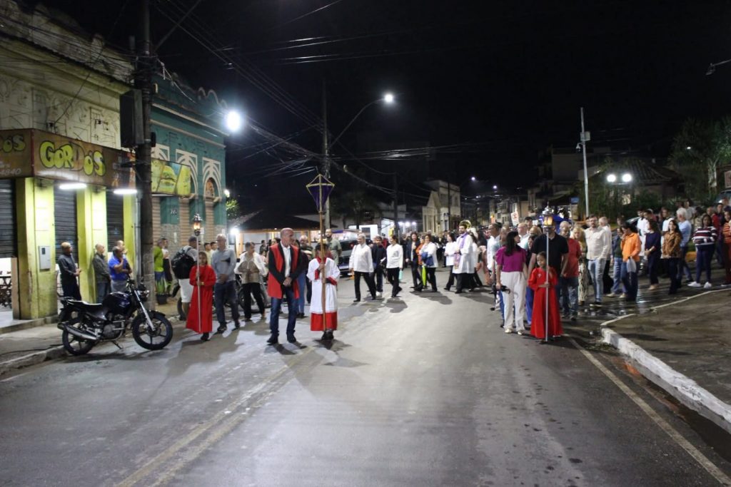 A programação da Semana Santa 2026 teve sequência nesta Terça-feira Santa com a realização da Santa Missa da Família, reunindo fiéis em um importante momento de oração e reflexão. Após a celebração, aconteceu a tradicional Procissão do Depósito de Nossa Senhora das Dores, marcada por forte expressão de fé e devoção. A imagem foi conduzida em cortejo pelas ruas, relembrando a dor e o sofrimento de Maria diante da paixão de Cristo. A celebração reforçou a importância da participação das famílias nas atividades religiosas, mantendo viva uma das mais significativas tradições da fé católica durante a Semana Santa.