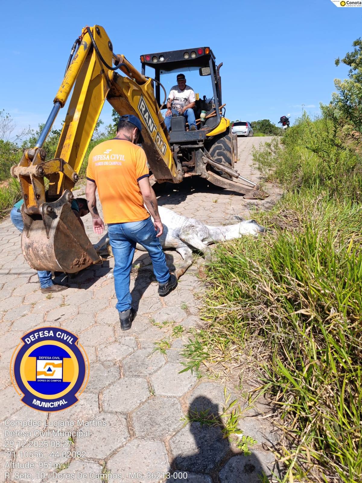 Durante a ocorrência, a equipe identificou ainda cerca de cinco animais soltos na região, sendo um em estado debilitado, com carrapatos e bicheira nas orelhas. O secretário de Agricultura e Meio Ambiente, Dudu do Alaor, esteve no local acompanhando a situação de perto. A empresa Bioma, por meio do funcionário Itamar Bandeira, foi acionada para recolher os animais, evitando novos acidentes e riscos à segurança de motoristas e dos próprios animais.
