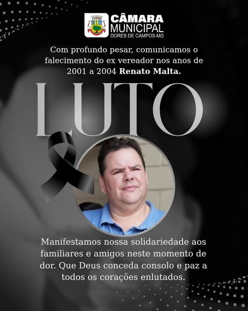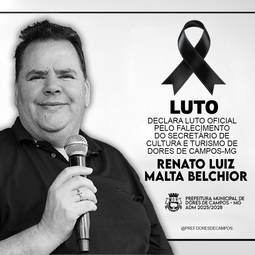 Dores de Campos está de luto pela morte de Renato Malta, aos 55 anos, conhecido como Renatão, atual secretário municipal de Cultura e Turismo. Ele foi vítima de um infarto fulminante. Renatão também teve atuação como vereador, exercendo mandato entre os anos de 2001 e 2004 pelo MDB, deixando sua marca na política dorense.