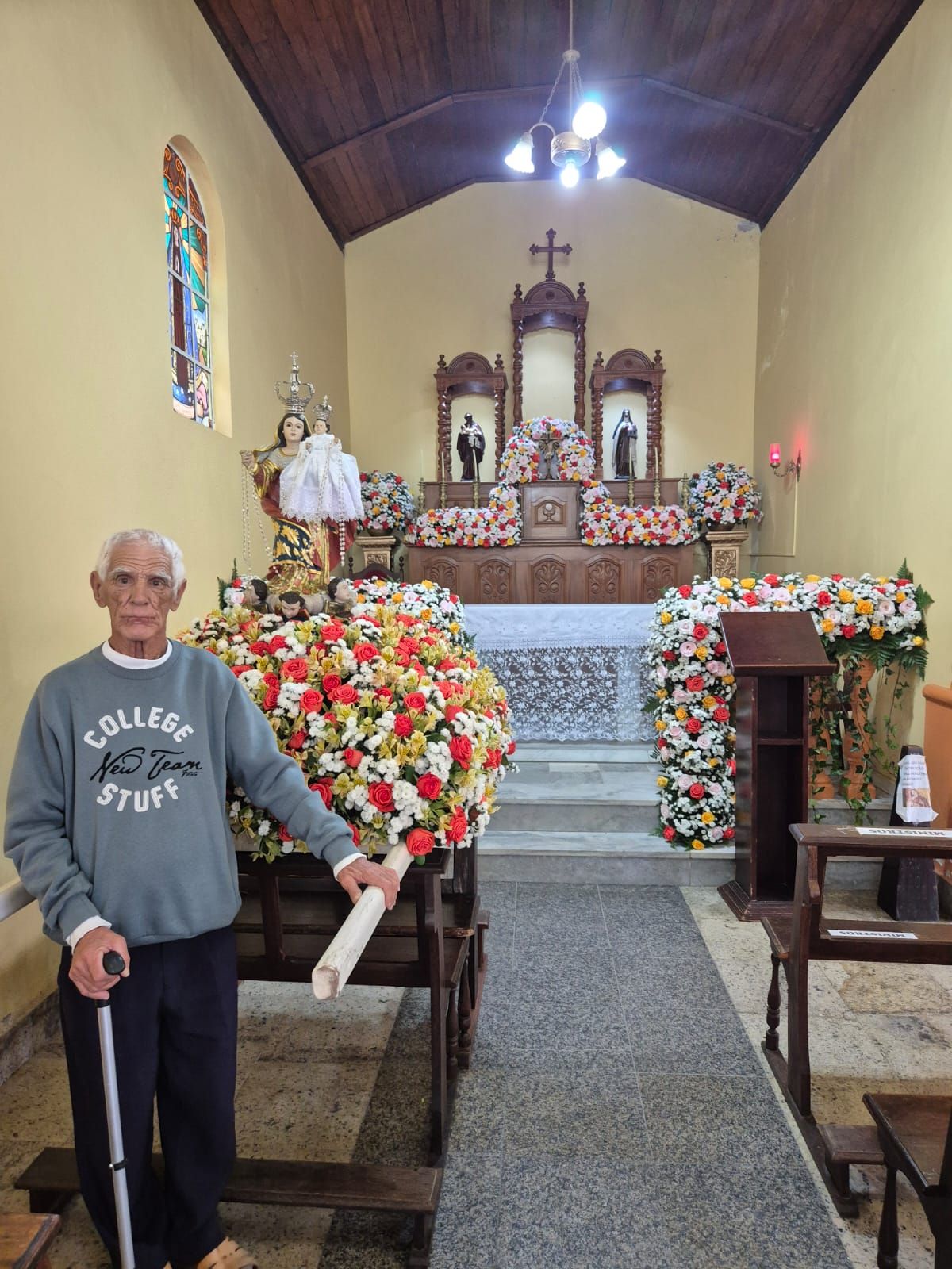 Nossa sincera homenagem a José Marcos de Melo, carinhosamente conhecido por todos como “Capa Bode”. Zelador dedicado da Capela do Rosário, ele sempre se destacou pelo amor, zelo e respeito com que cuidava da casa de Nossa Senhora. Com sua presença simples e coração generoso, Capa Bode se tornou parte viva da história e da fé de nossa comunidade. Seu exemplo de serviço, humildade e devoção continuará inspirando todos aqueles que frequentam a Capela do Rosário. Que Deus o abençoe e o recompense por todo o bem que fez com tanta dedicação e carinho.