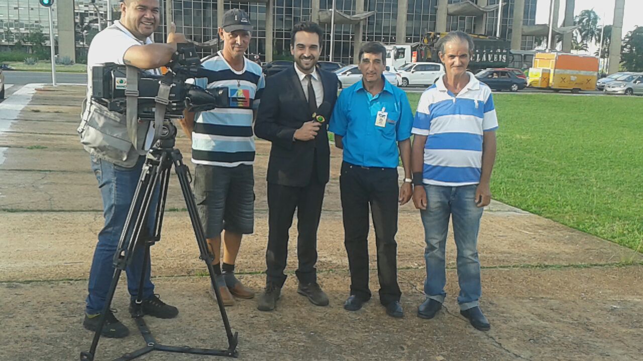 O popular Geraldinho da Nota não para de trabalhar. Motorista concursado da Prefeitura Municipal de Dores de Campos há mais de 20 anos, nas horas vagas, ele transporta os dorenses para as mais variadas excursões pelo Brasil. Nesta sexta-feira (02/06) durante mais uma de suas viagens para o Santuário do Pai Eterno em Trindade no estado de Goias, ele aproveitou para passar por Brasília. Na oportunidade, Geraldinho ainda foi entrevistado por uma equipe da TV Band. “Falei sobre o Temer”, destacou.