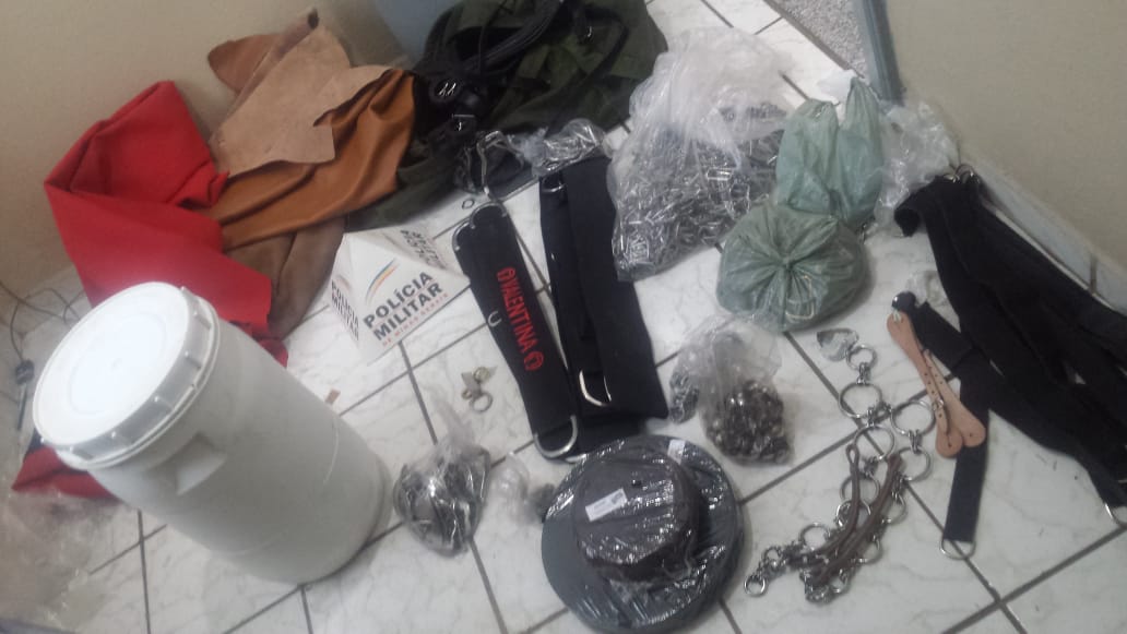 Na tarde desta terça-feira (31/07) a Polícia Militar de Dores de Campos cumpriu um mandado de busca e apreensão expedido pela Comarca de Prados. De acordo com as informações apuradas pela nossa reportagem, o alvo da operação policial foi uma residência no bairro Alto da Caixa D´Água, no qual os policiais encontraram grande quantidade de materiais utilizados na fabricação de selas e acessórios para montaria. Também foi localizado um tablete de maconha. O dono da casa fugiu ao perceber a presença da PM e, de acordo com o sargento Bento, o material apreendido estaria avaliado em aproximadamente R$ 8.000,00 o que chamou a atenção de todos, tendo em vista que o suspeito não trabalha no ramo de selaria.
