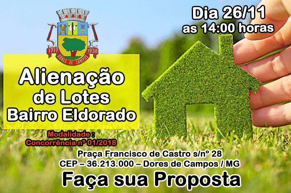 Com a aprovação, por unanimidade, da Câmara Municipal de Dores de Campos, a atual administração publicou o Edital de Concorrência 01/2018, com todas as informações sobre os 20 lotes que pertencem ao município e serão leiloados na Cohab, para que o valor arrecadado possa ser investido no recapeamento das ruas daquela comunidade, segundo destacou o prefeito Marcílio Cotta (MDB). Mesmo com o leilão dos 20 lotes, a Prefeitura ainda continuará com outros 30 lotes também na Cohab.