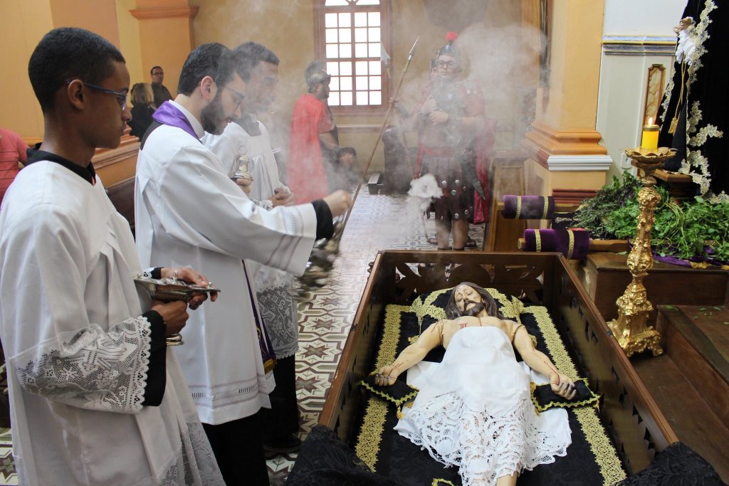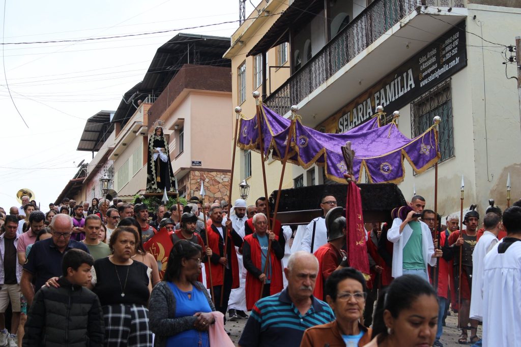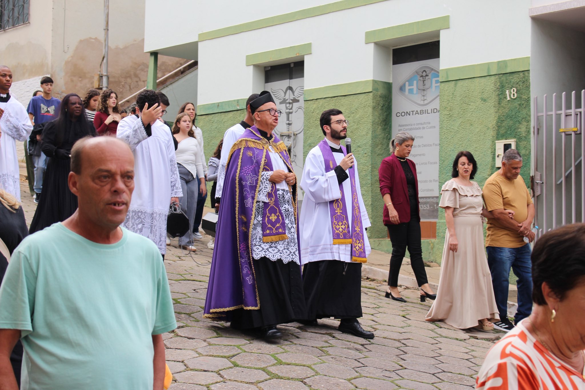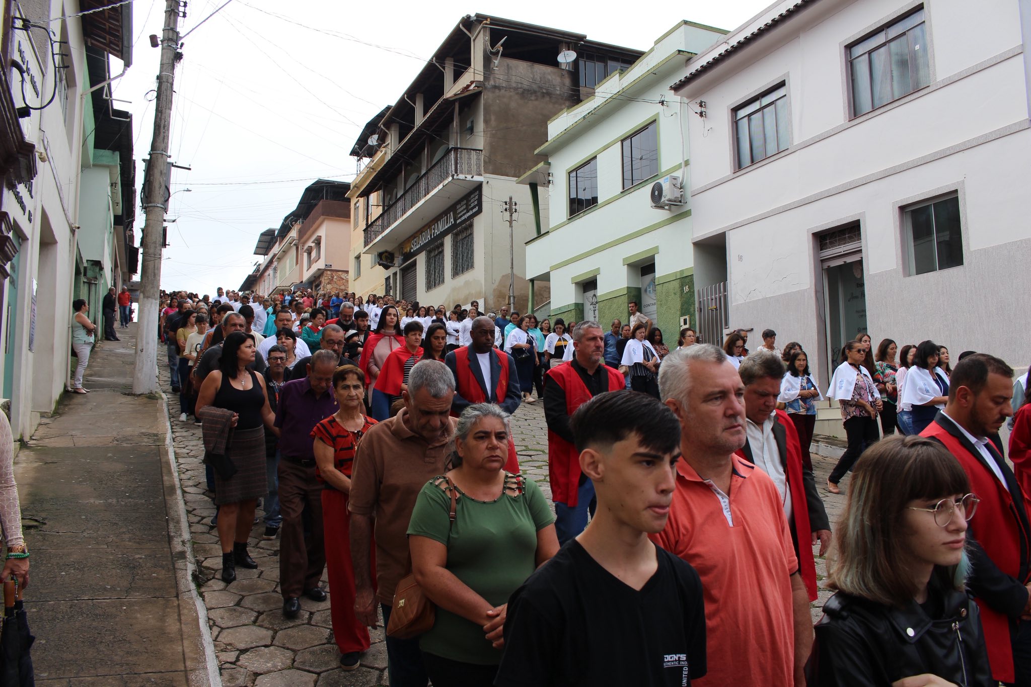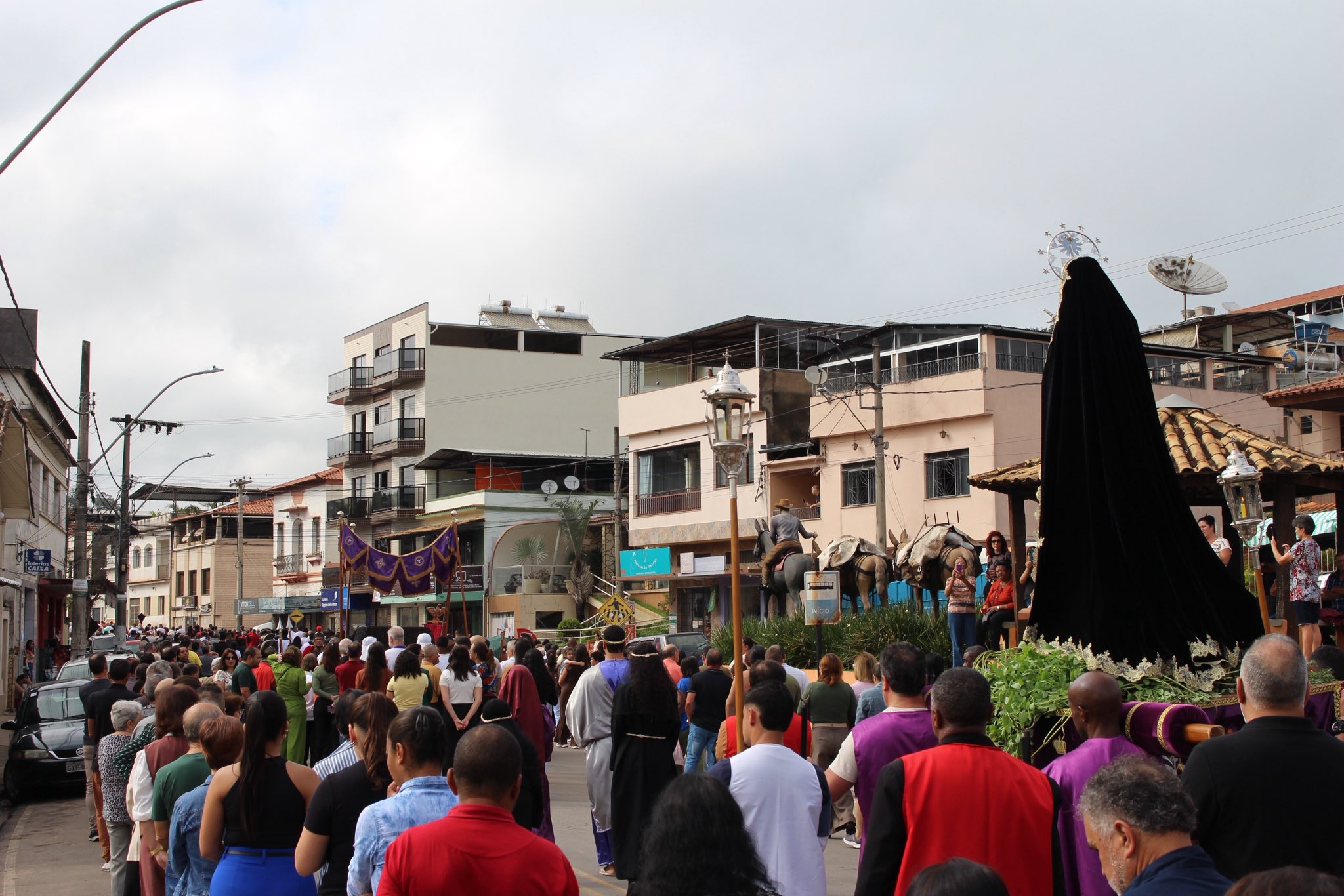 A tradicional Procissão do Enterro foi realizada na manhã deste sábado (04/04) em Dores de Campos, após alteração na programação devido às fortes chuvas registradas na noite de sexta-feira (03/04). O cortejo, que normalmente ocorre em outro horário, precisou ser realizado de forma excepcional, reunindo fiéis que, mesmo com a mudança, participaram do momento de fé e devoção característico da Semana Santa. A procissão percorreu as ruas da cidade em clima de respeito e reflexão, mantendo viva uma das mais importantes manifestações religiosas do município.