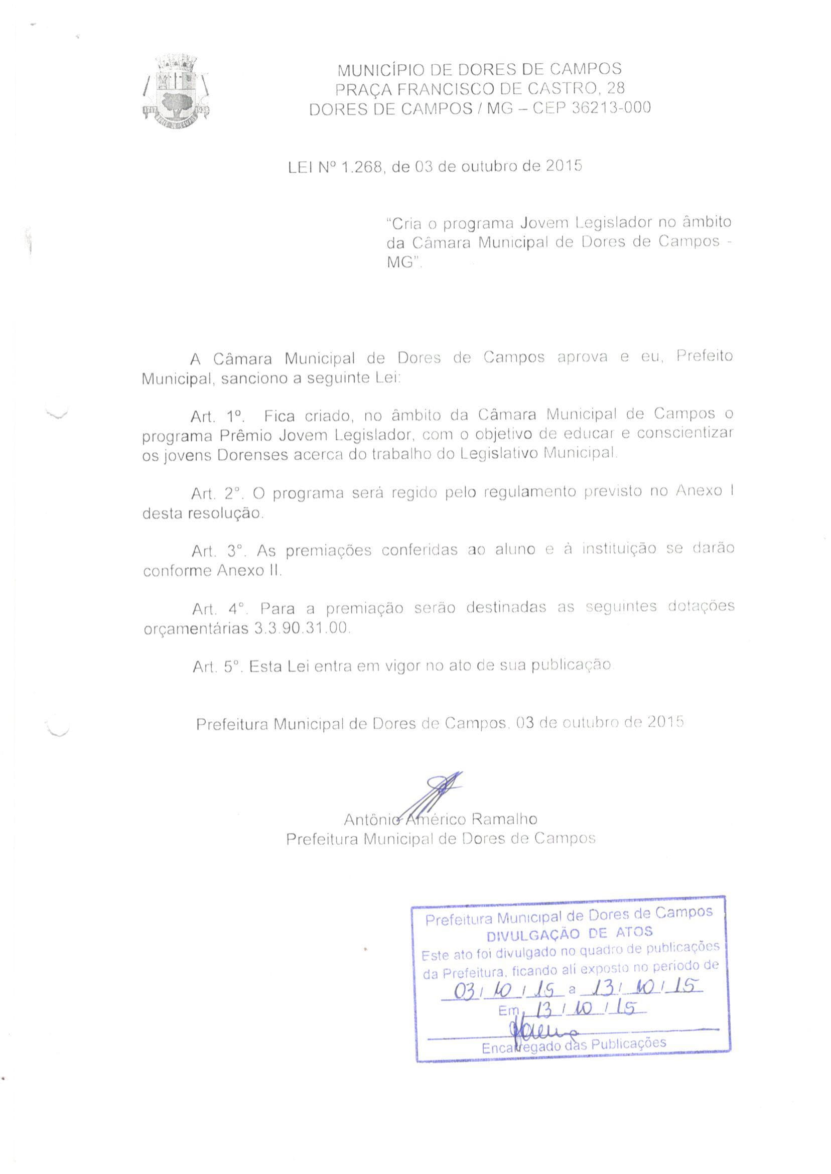 Criado no ano de 2015 pelo vereador Cimerco (PP) e aprovado por unanimidade pelos vereadores da época, o Programa Jovem Legislador será colocado em prática neste ano de 2018 pelo presidente da Câmara, vereador Bal do Carlos Heleno (PT). Na última terça-feira (17/04) o vereador Cimerco (PP) apresentou em Plenário para os demais vereadores, a Cartilha Educativa que foi confeccionada e que será entregue aos alunos do 9º ano das escolas de Dores de Campos, caso da Escola Estadual Duque de Caxias e do Centro Educacional Wanderley Arruda (CEWA).