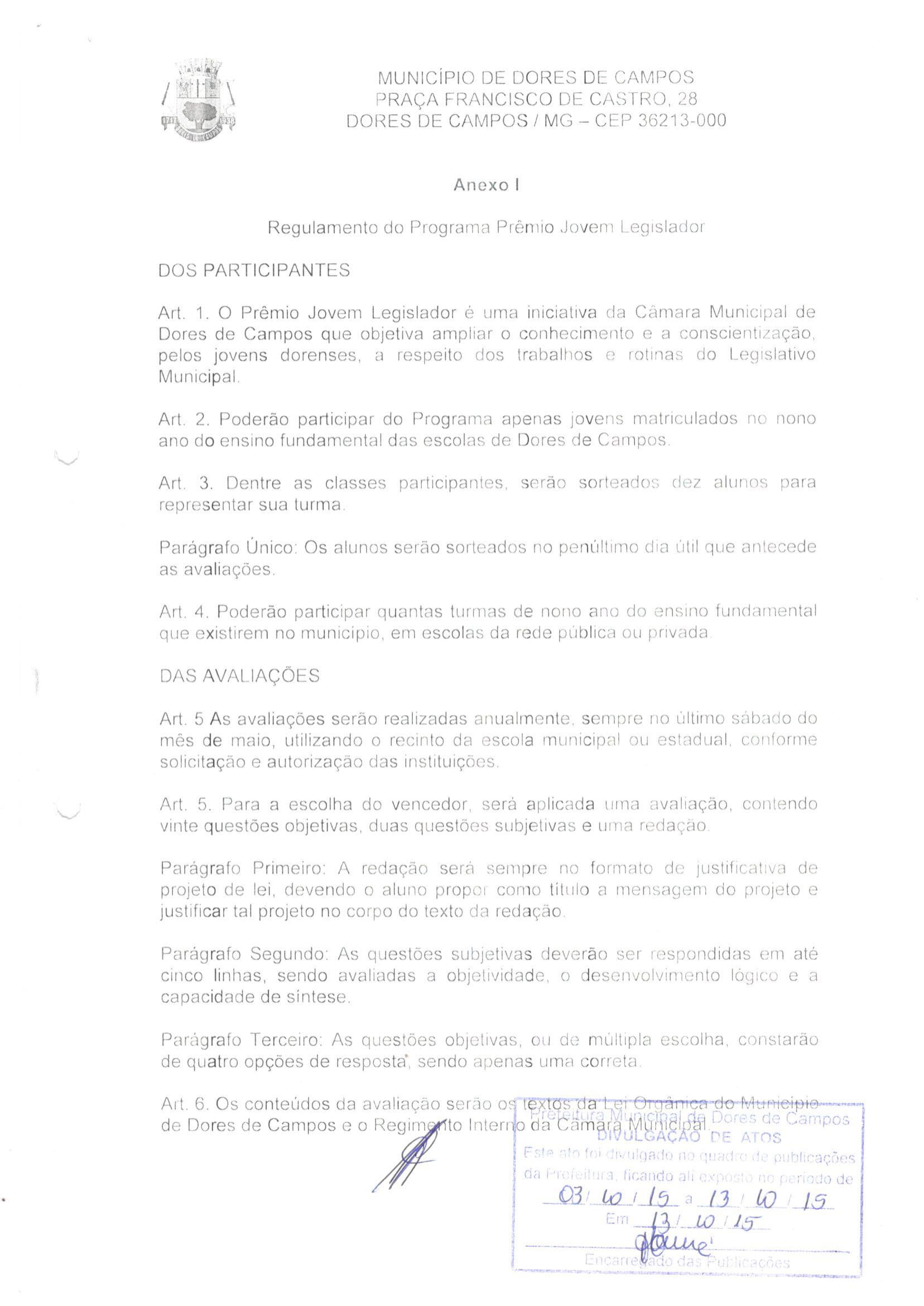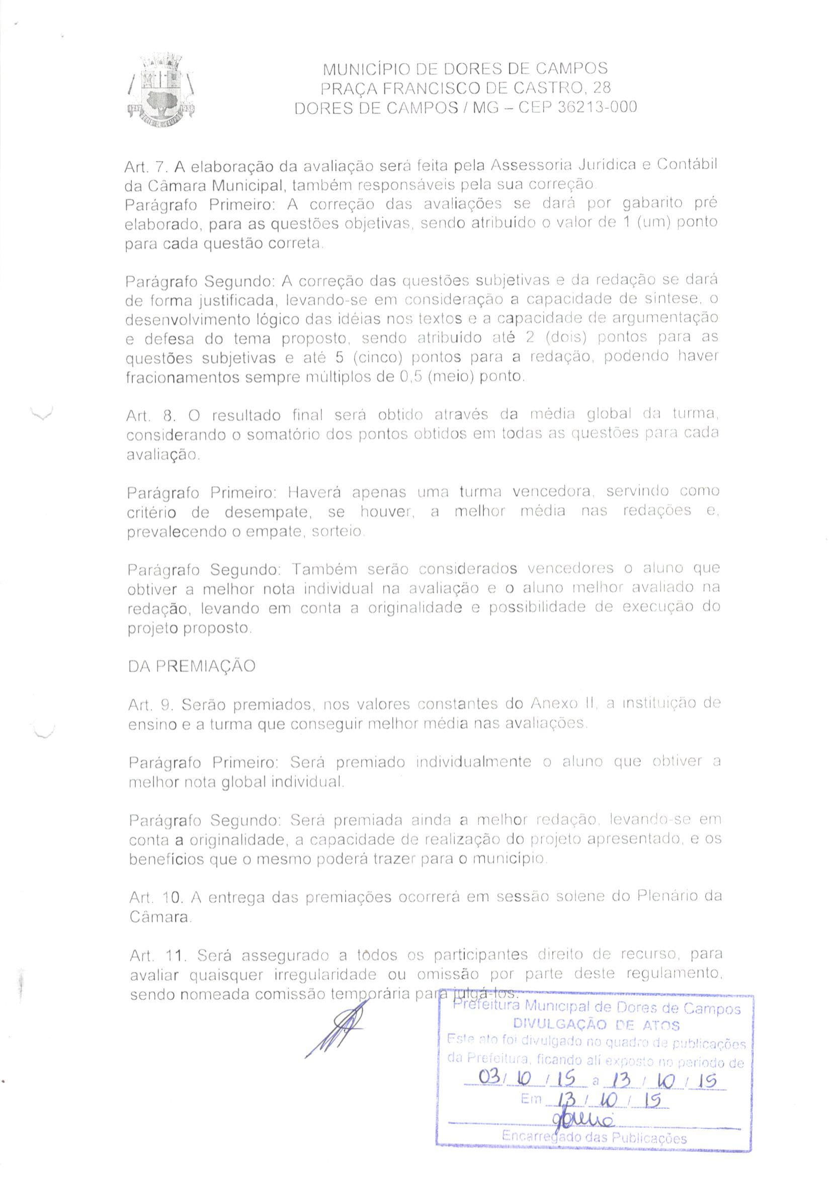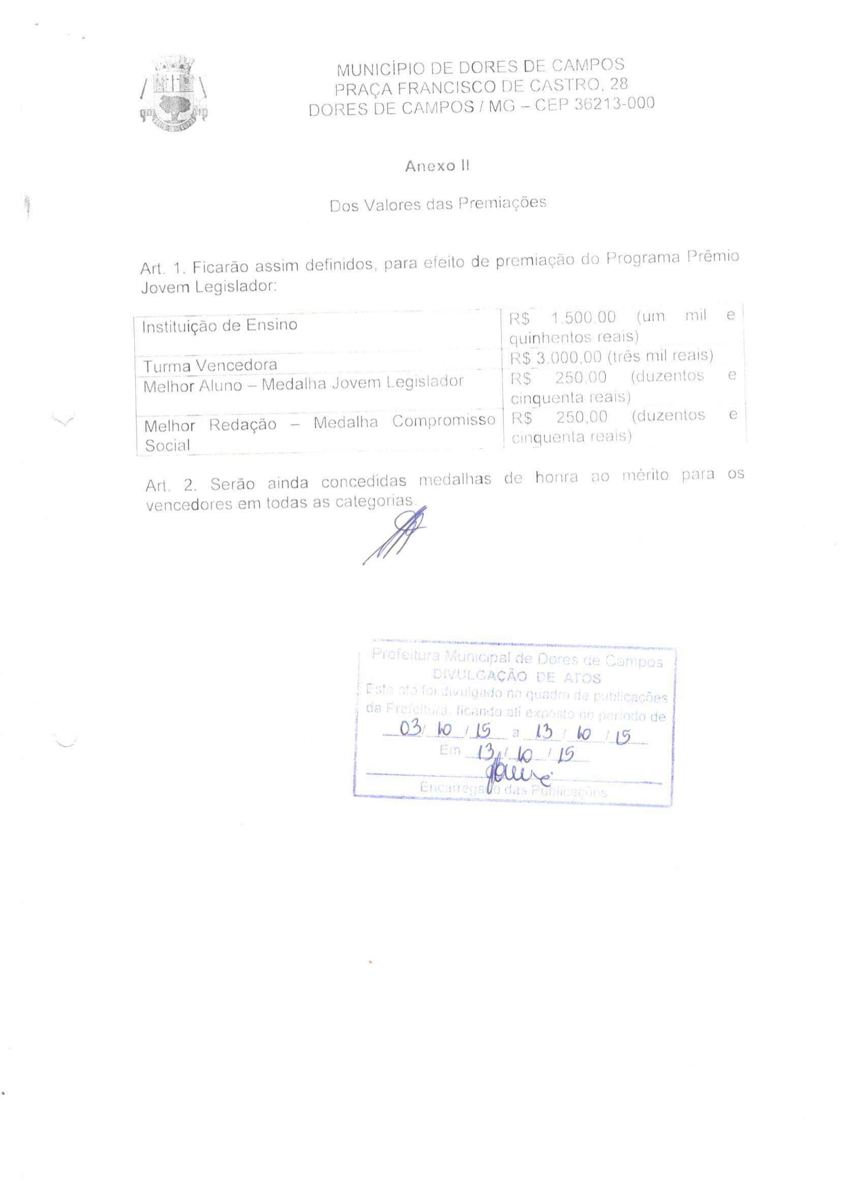 Ao todo, serão distribuídos R$ 5 mil em prêmios, conforme a Lei Municipal 1.268/2015, sancionada pelo então prefeito Toninho do Ninico (DEM) no dia 3 de outubro. “Temos o objetivo de educar e conscientizar os jovens dorenses a cerca do trabalho dos vereadores em um todo”, destacou Cimerco (PP). Já nos próximos dias, o vereador irá visitar as escolas e apresentar o Programa para os estudantes.