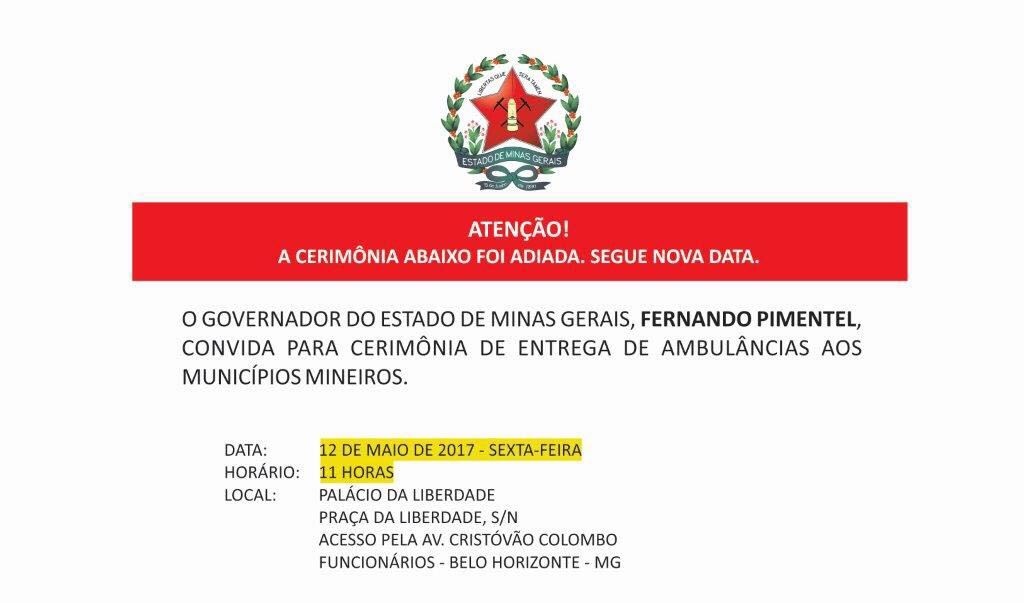 A princípio a entrega seria na quarta-feira (10/05), mas a pedido do governador Fernando Pimentel (PT), o evento foi remarcado para sexta-feira (12/05).