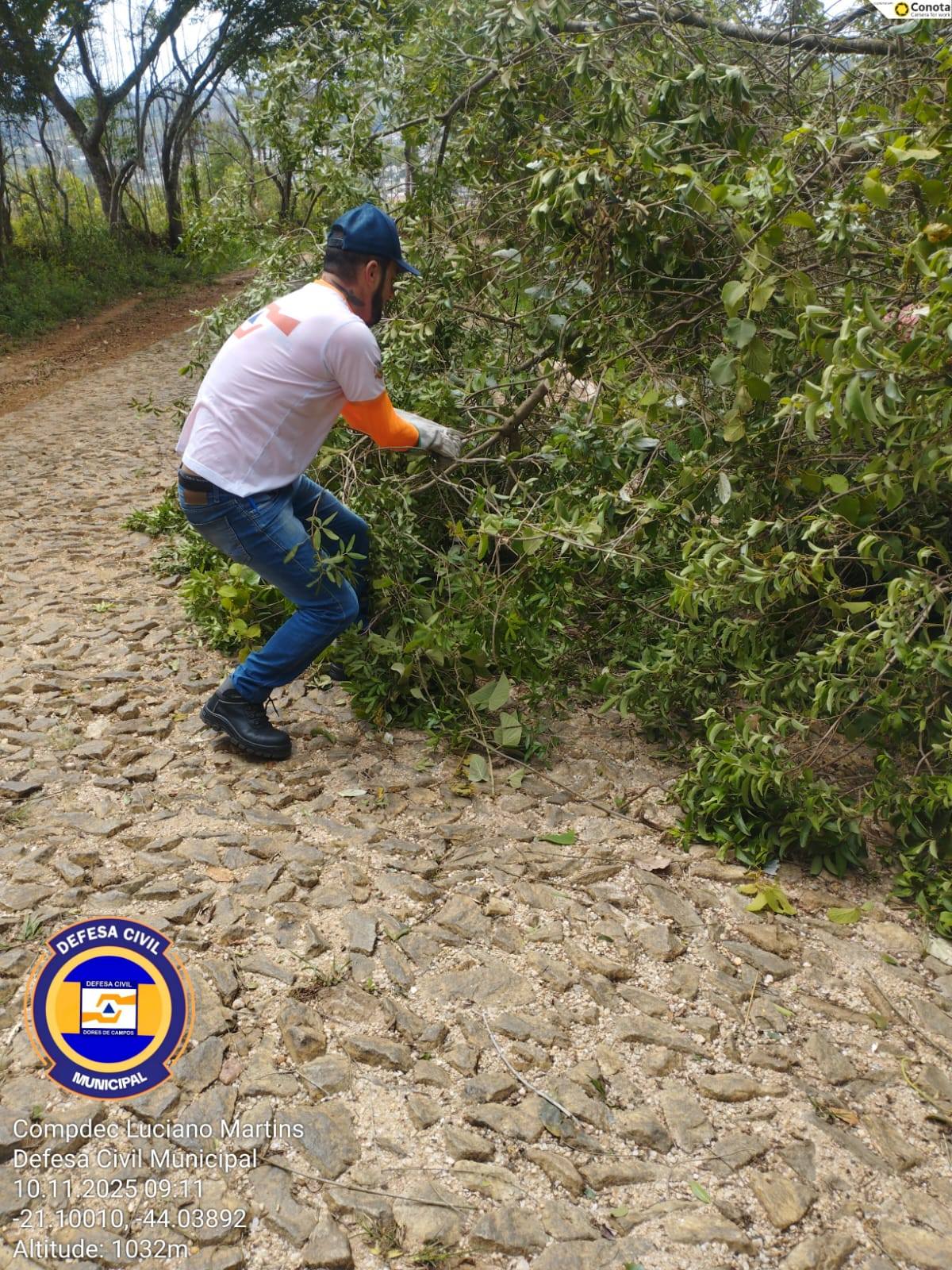 A Defesa Civil e a Secretaria de Obras de Dores de Campos realizaram na manhã desta segunda-feira (10/11) a remoção de duas árvores que haviam tombado na estrada que dá acesso à Igreja do Livramento, na zona rural de Prados.A ação garantiu a liberação total da via, que agora está segura para o tráfego de pedestres e veículos que passam diariamente pelo local. O trabalho conjunto das equipes foi essencial para restabelecer a normalidade e evitar transtornos à comunidade rural.