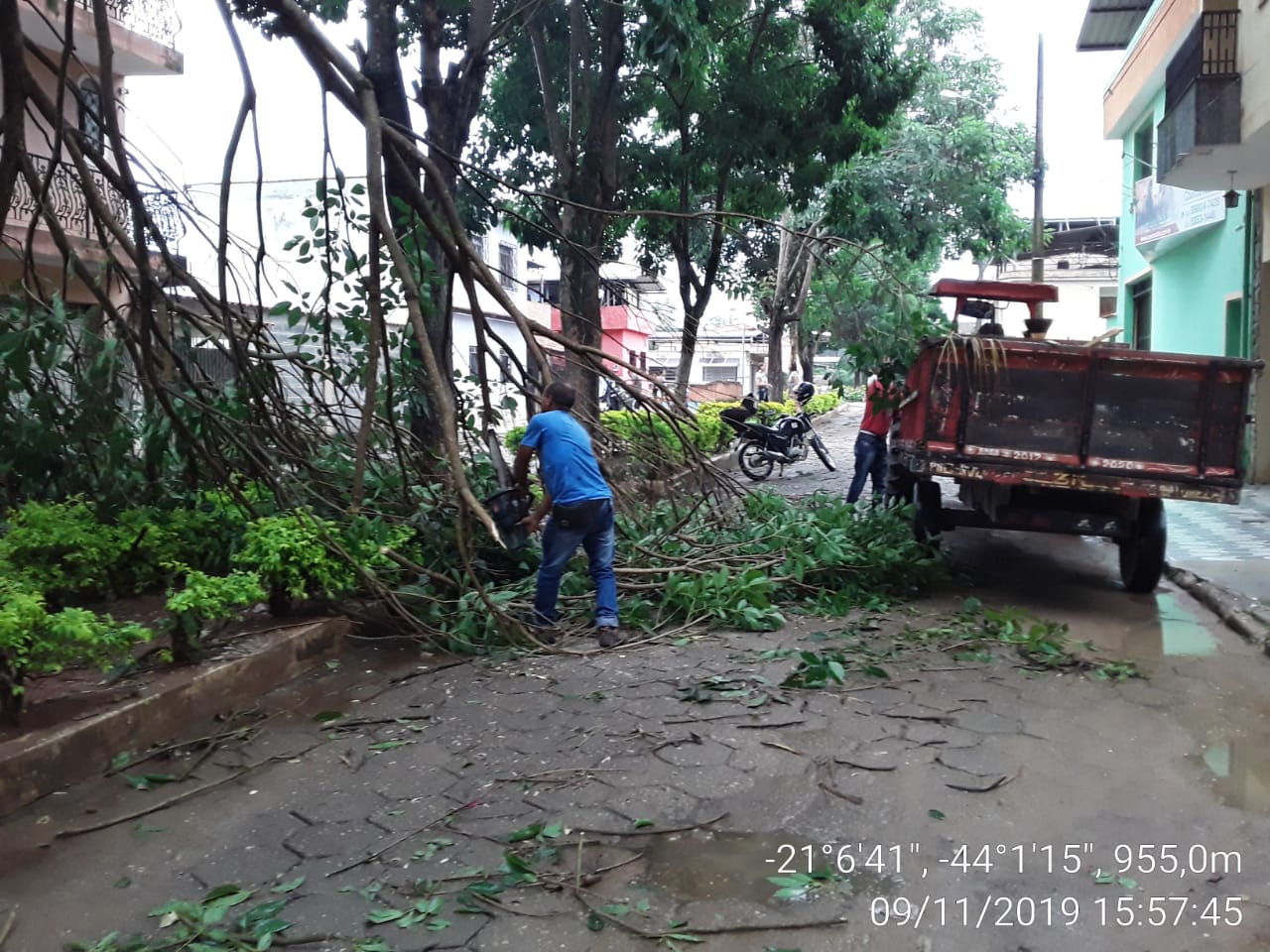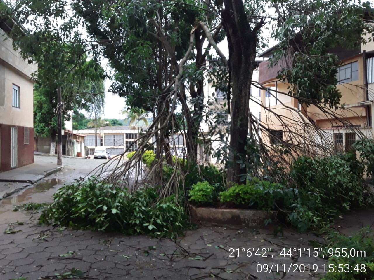 Na região do tratamento de água, uma árvore caiu e atingiu em cheio a rede de energia da CEMIG, dessa forma a distribuição de água está interrompida em boa parte da cidade, prejudicando também o sinal das antenas comuns de televisão e internet.