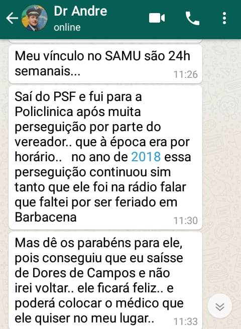 Doutor André rebateu e voltou a afirmar que saiu por causa da perseguição do vereador: