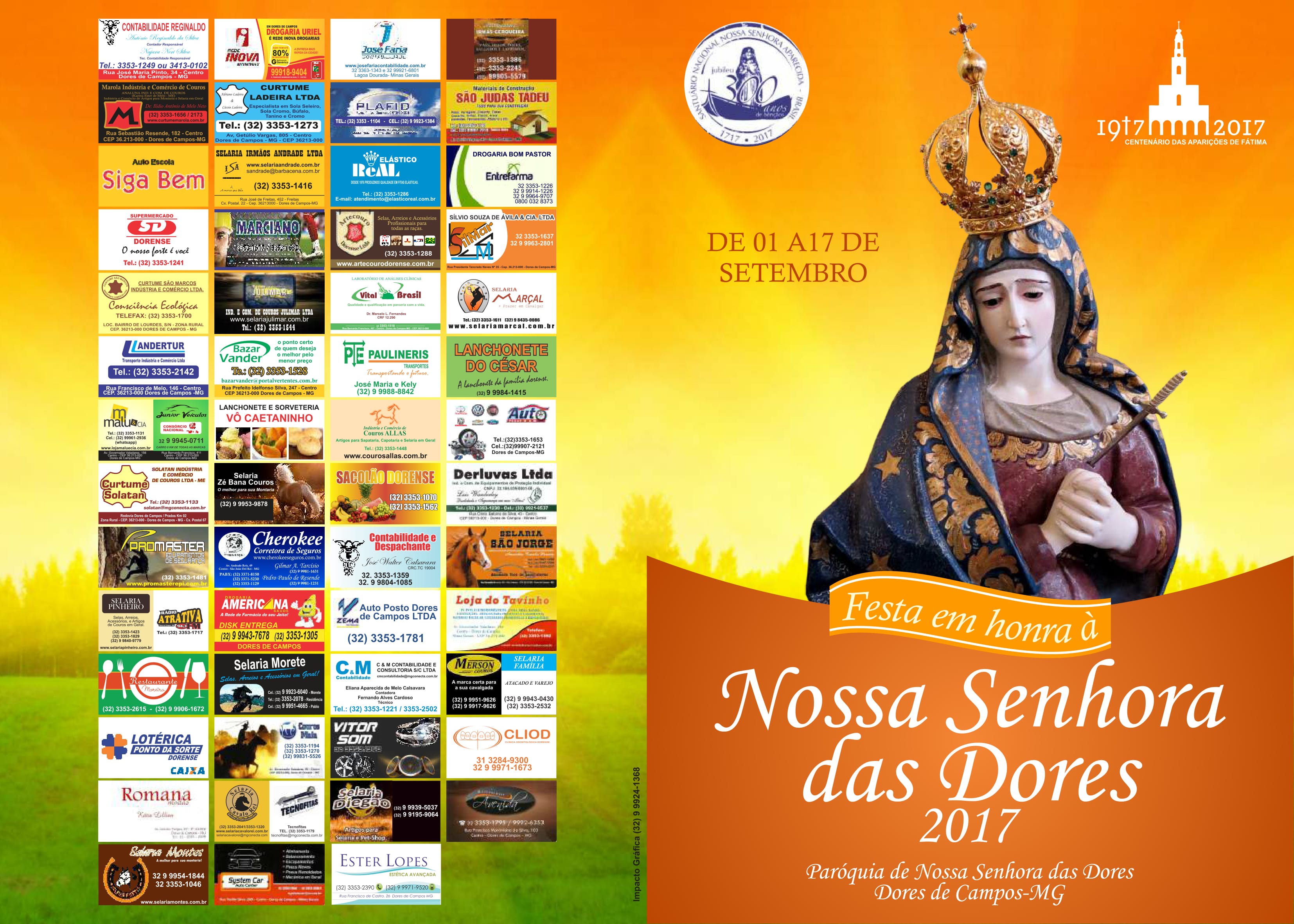 Os católicos de Dores de Campos estão em festa, com as comemorações em honra a Padroeira Nossa Senhora das Dores. Celebrações nos bairros e na Igreja Matriz fazem parte da programação oficial, sob a responsabilidade do padre Paulo Marcelo Daher Gomes Filho.