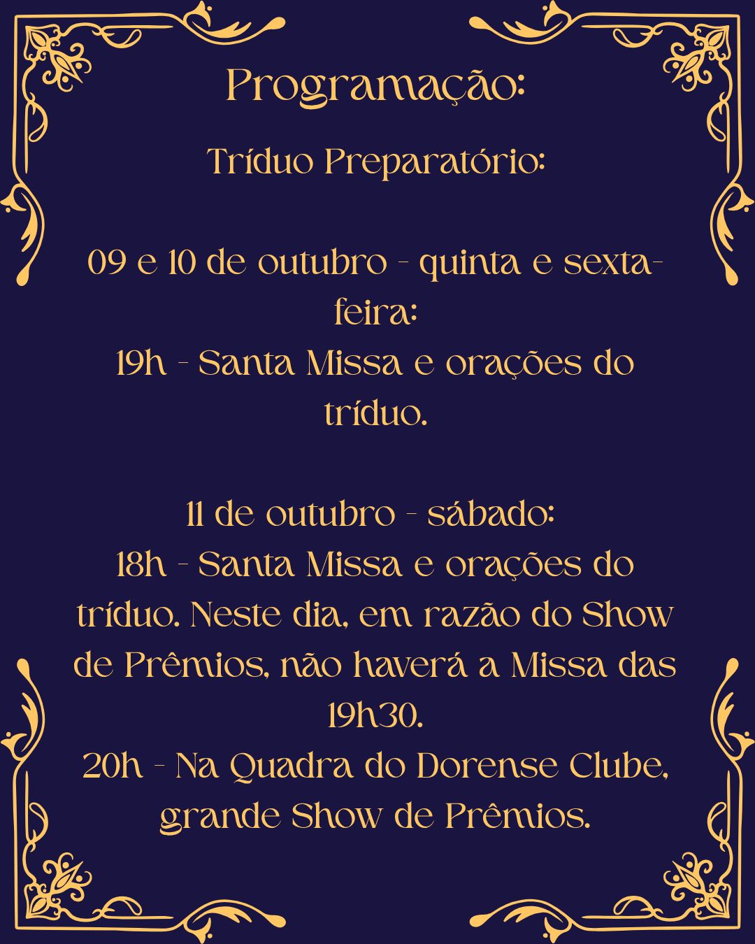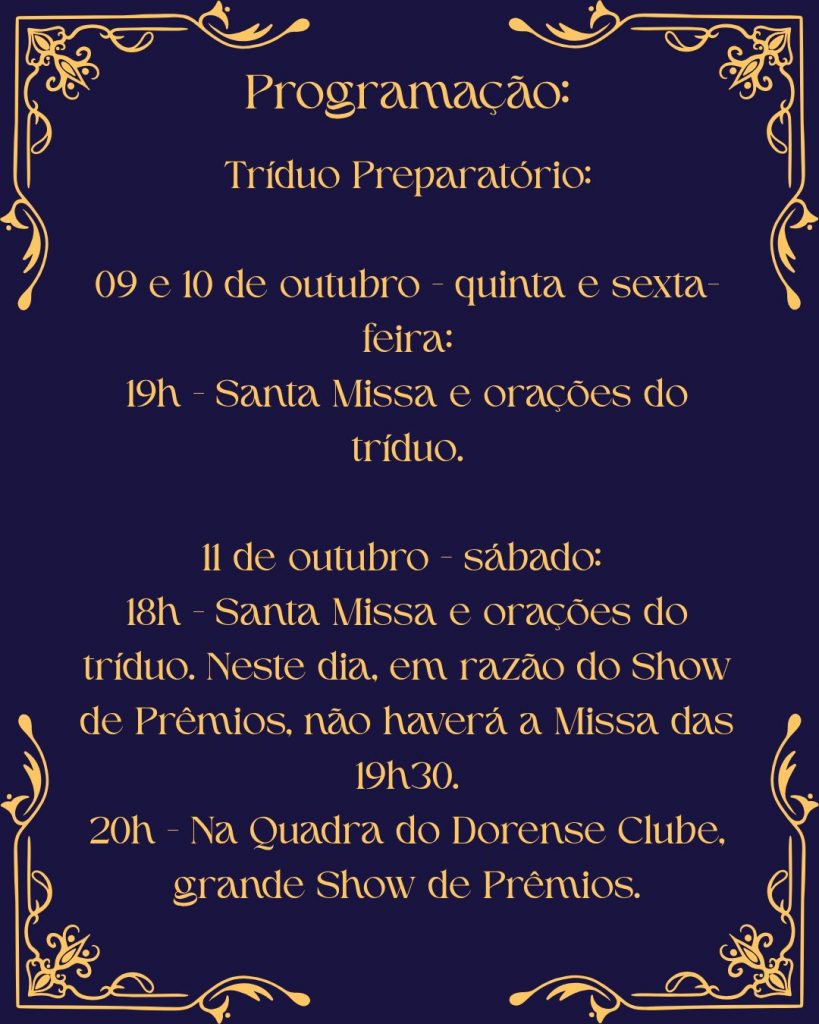 A Paróquia de Nossa Senhora das Dores, em Dores de Campos, divulgou a programação da Festa em honra a Nossa Senhora Aparecida, Padroeira do Brasil. Momento de fé e devoção!